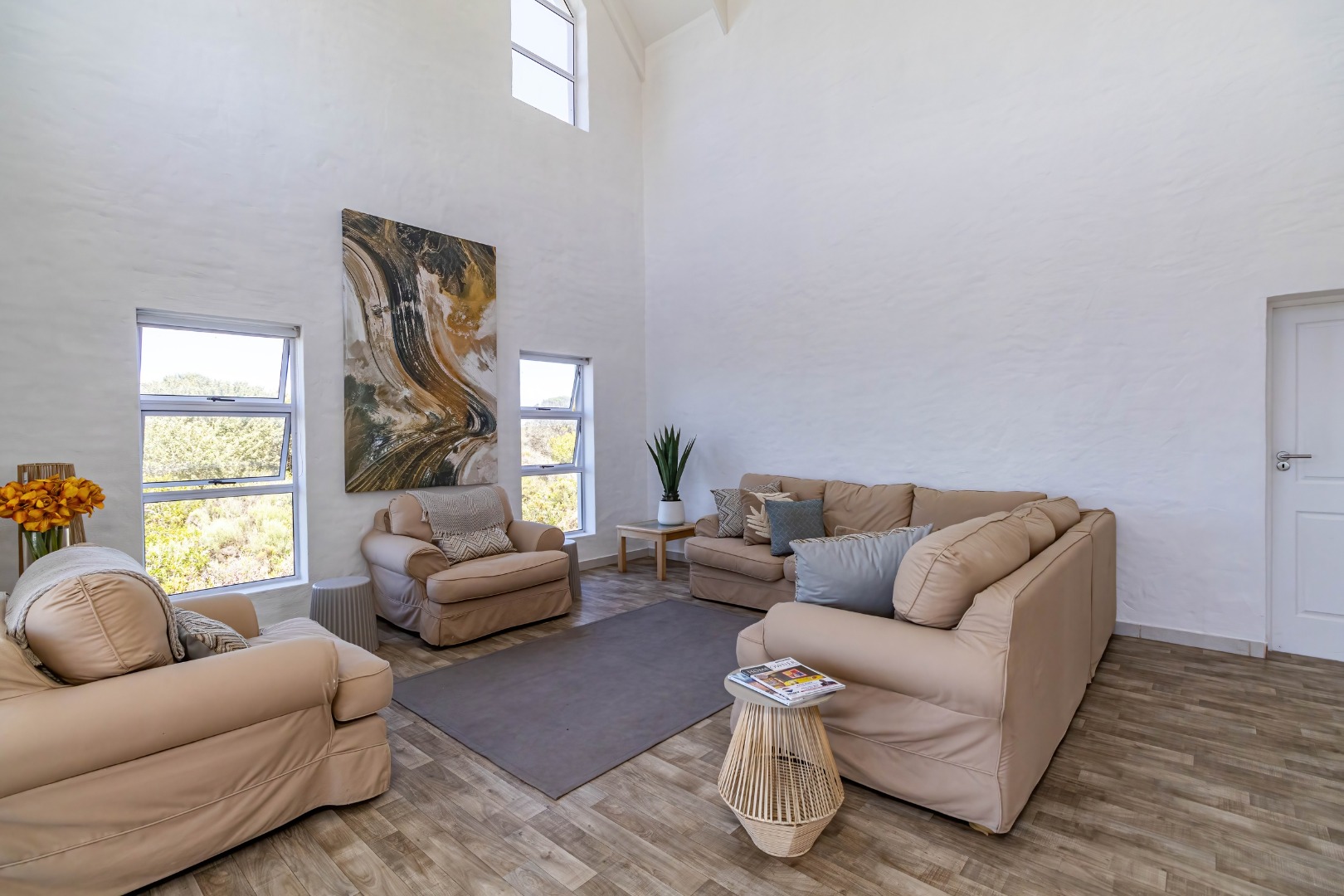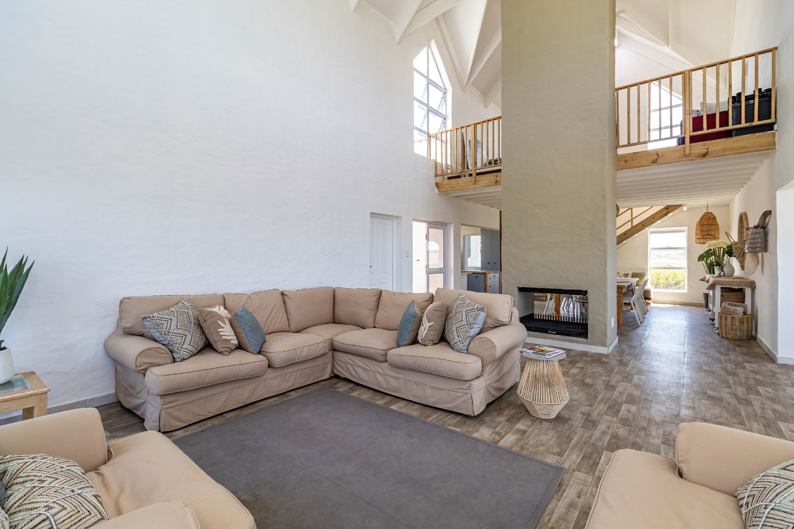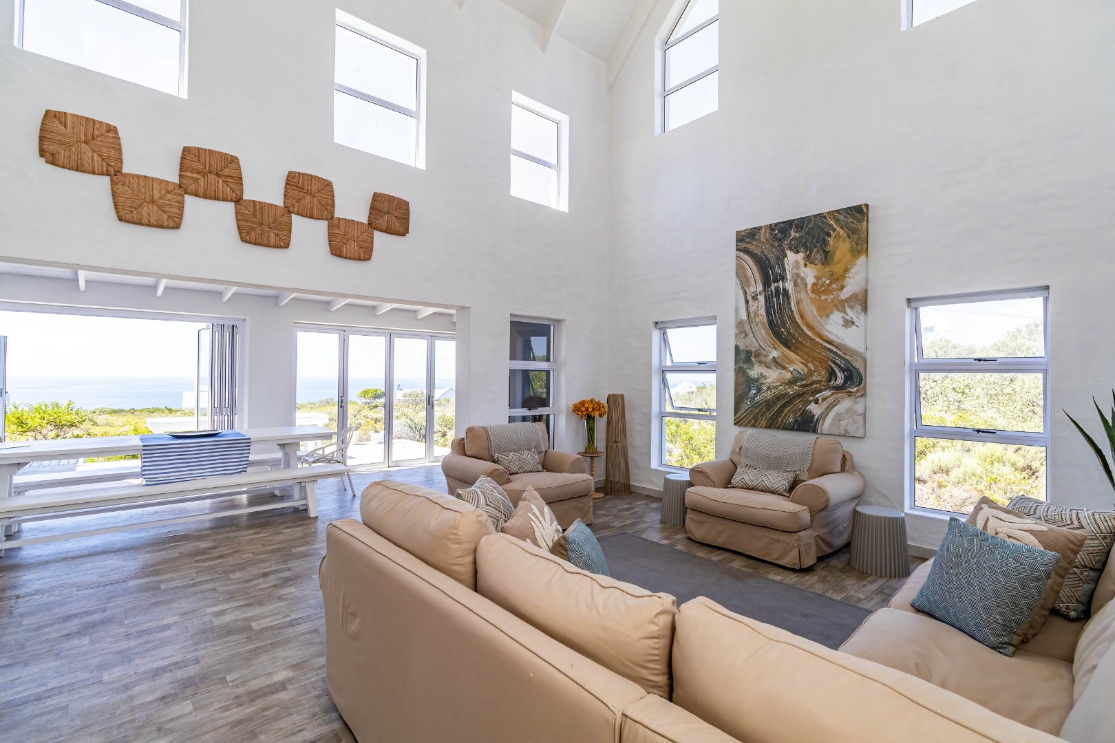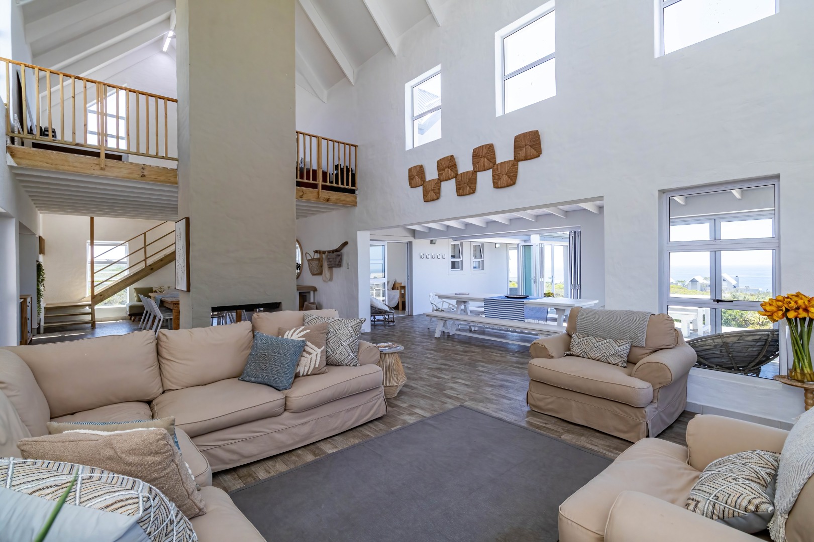 * Expansive open-plan living areas with vaulted ceilings.