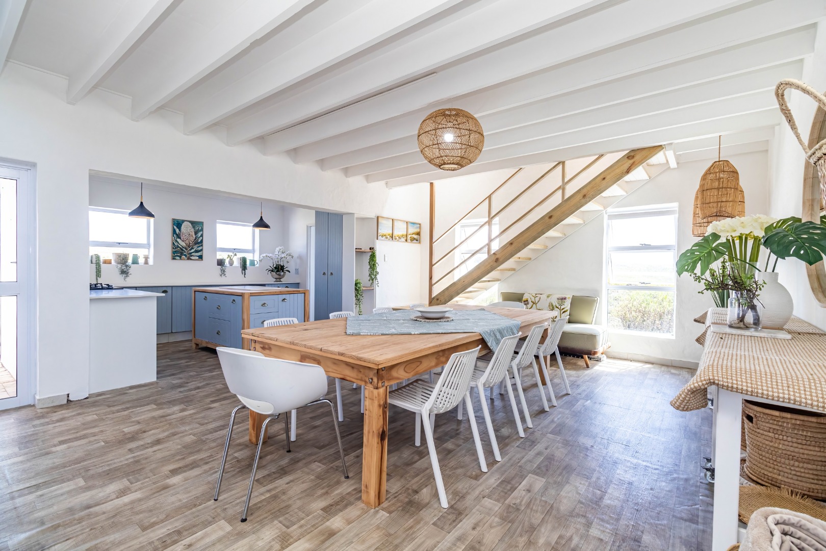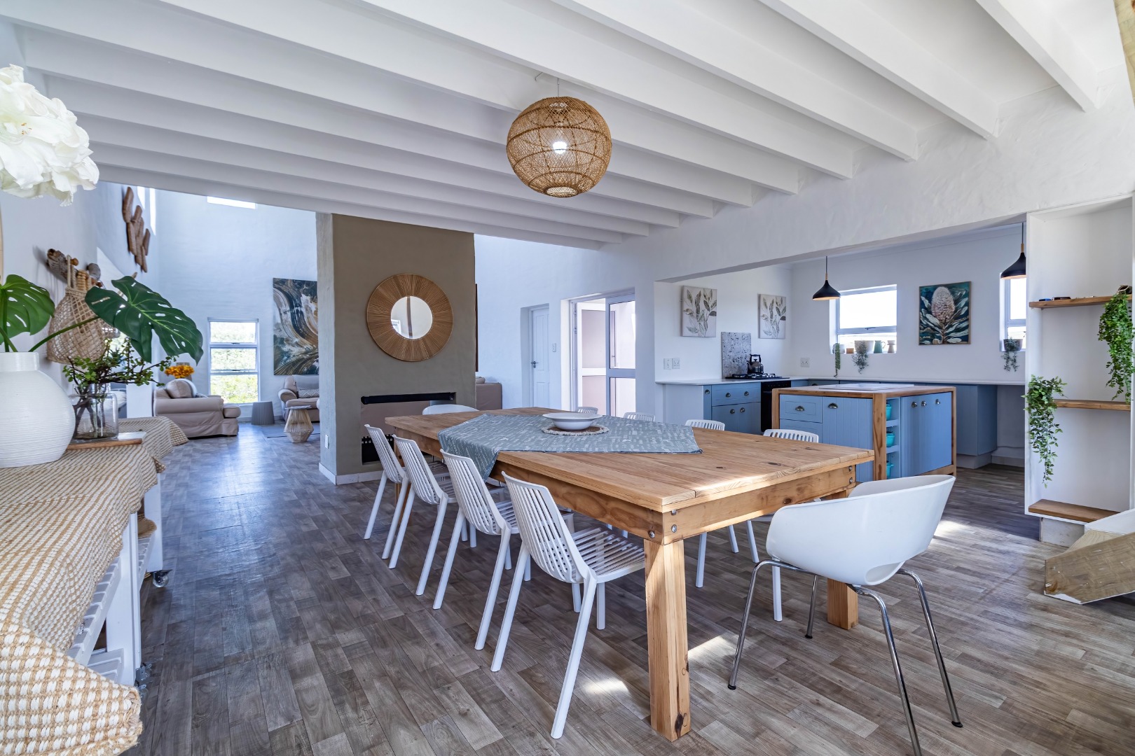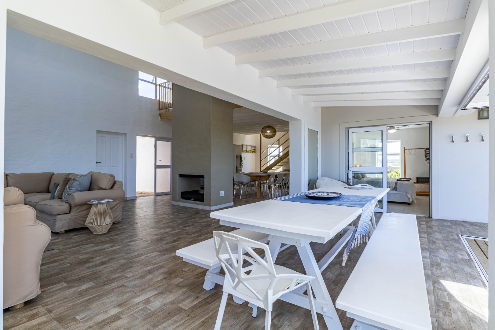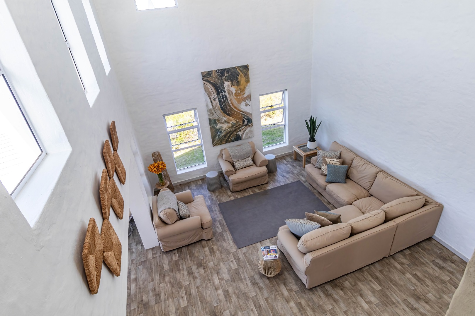 * Expansive open-plan living areas with vaulted ceilings.