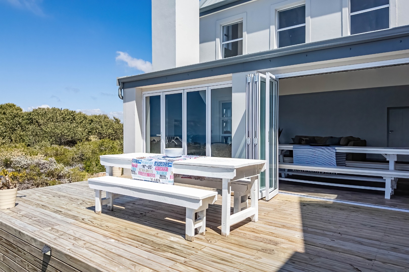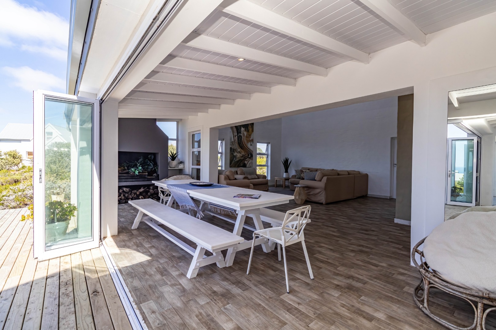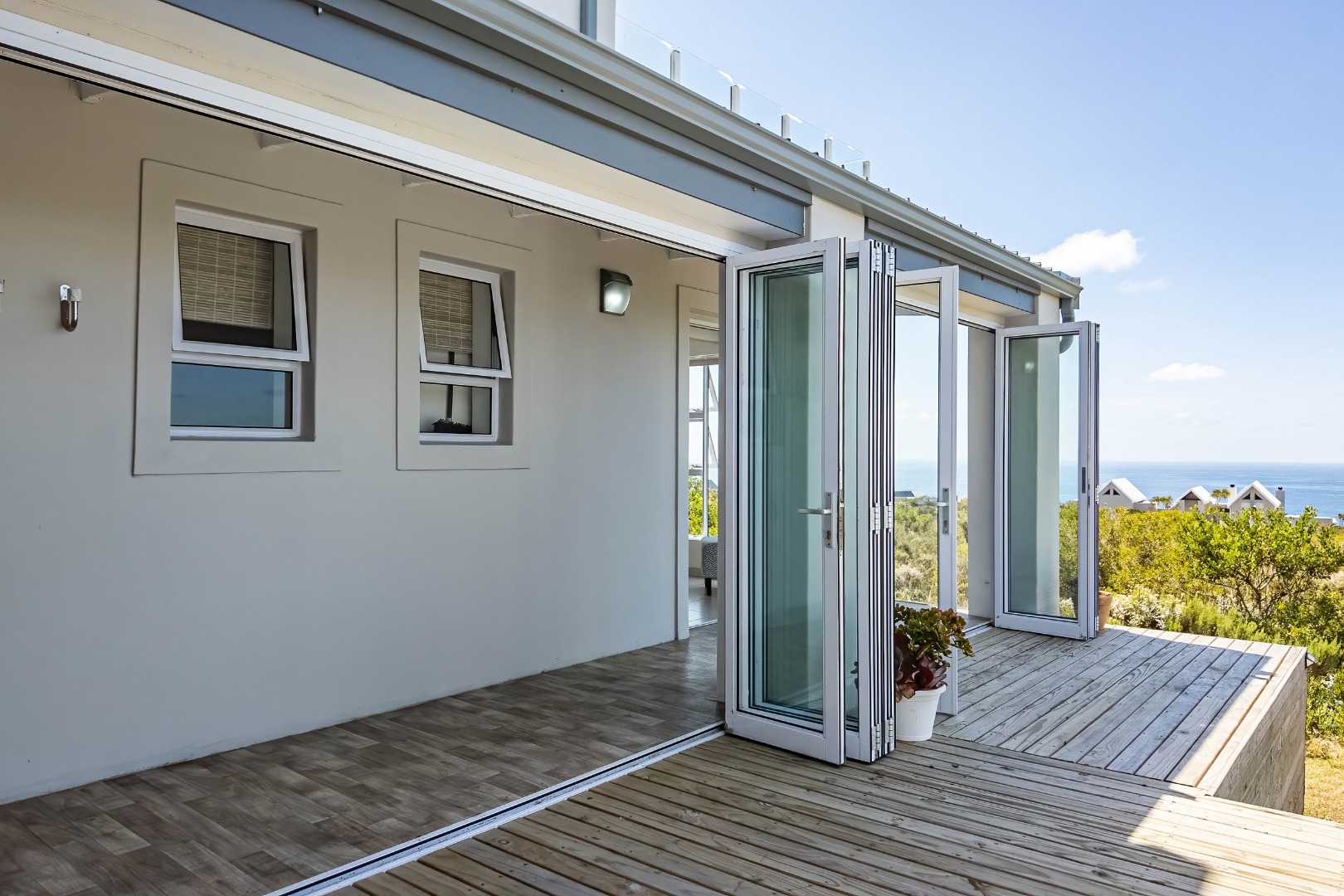 * Large wooden deck for seamless indoor-outdoor entertaining.