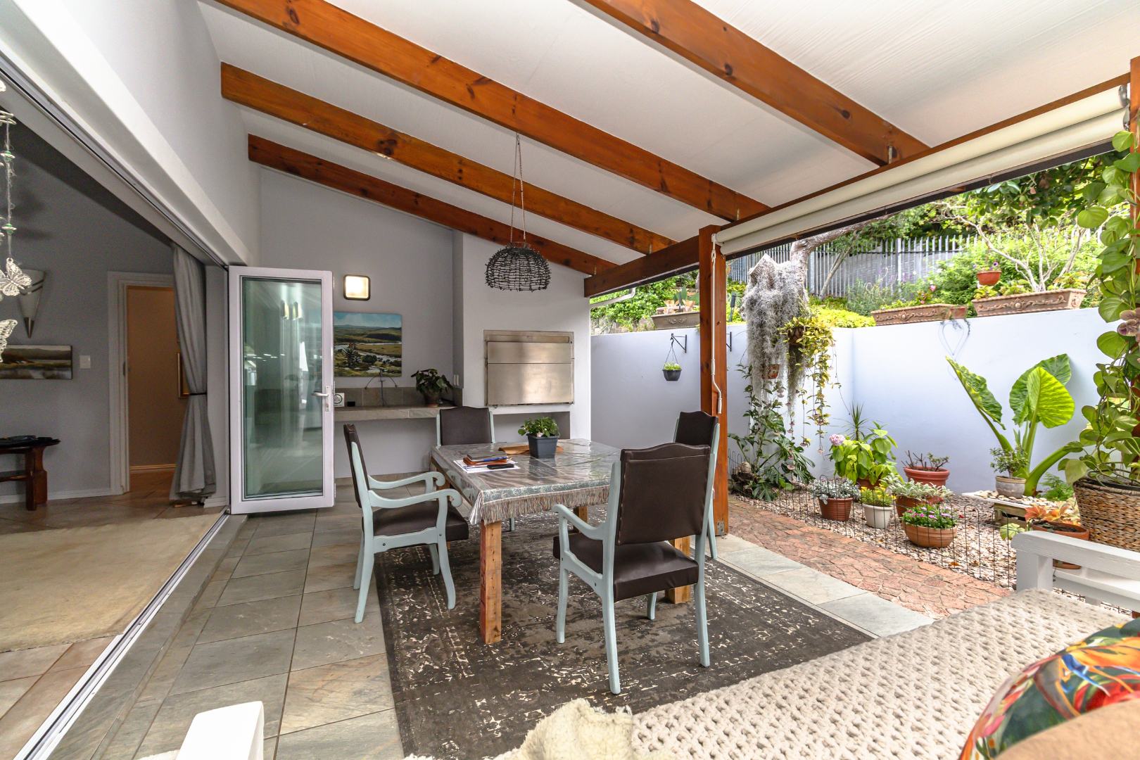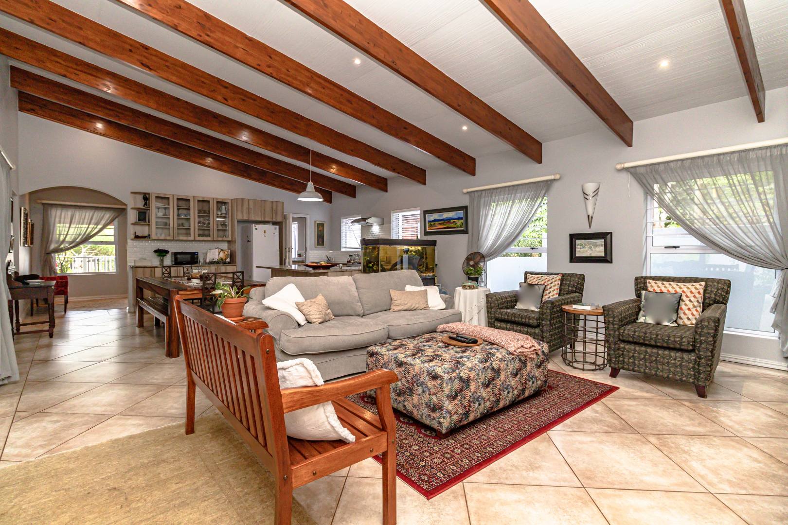 Exclusive Mandate.This modern residential property in Sedgefield Central offers a harmonious blend of comfort and contemporary living. Boasting a well-maintained exterior with a light-colored facade, dark grey roof, and extensive brick paving, the home presents excellent kerb appeal. A large attached double garage and ample parking for four vehicles ensure convenience. Lush, established gardens, complete with an irrigation system and borehole, create a serene outdoor environment, enhanced by mature trees and vibrant plantings.