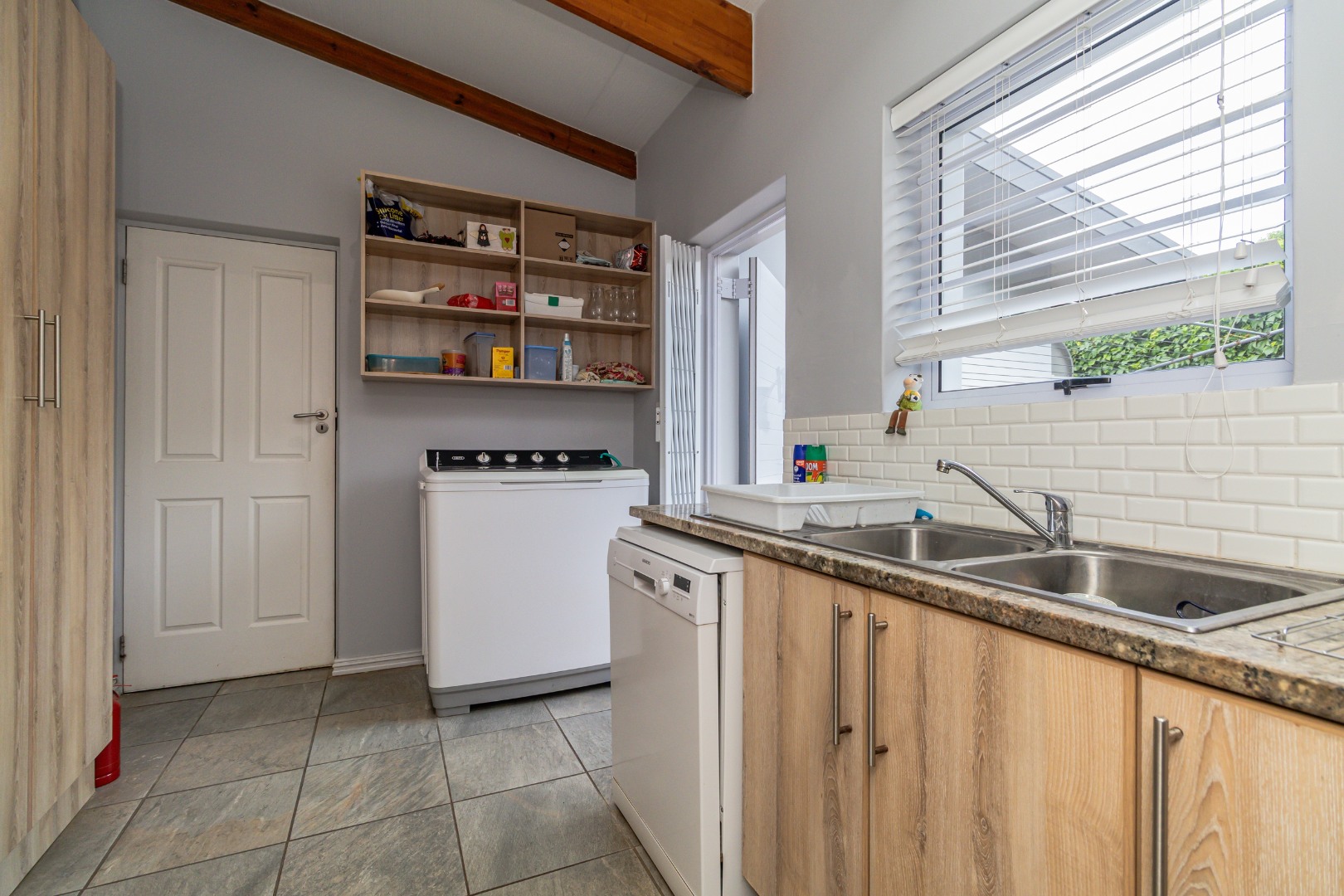 Sustainability and security are paramount. The property benefits from water tanks, a solar geyser, and a battery inverter, promoting energy efficiency and water independence. Security features include an alarm system and security gates, ensuring peace of mind. Fibre connectivity is available, catering to modern lifestyle needs. The property is also wheelchair-friendly and pet-friendly, with a secure fence. Additional amenities include a laundry, storage, and a wendy house.