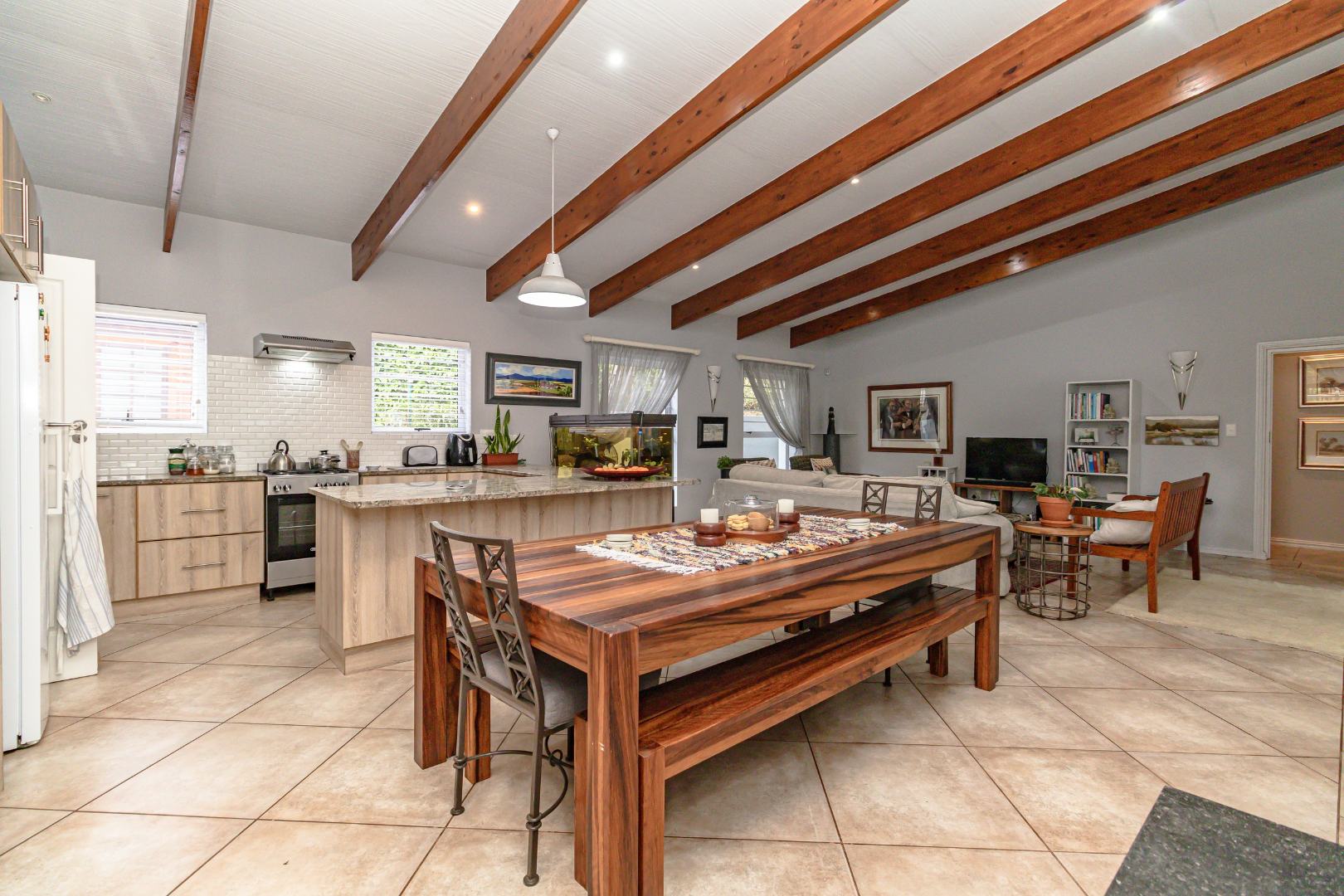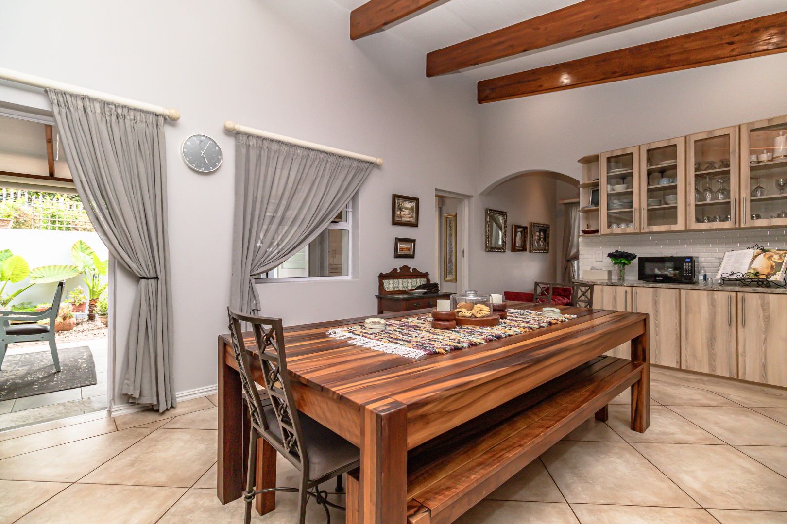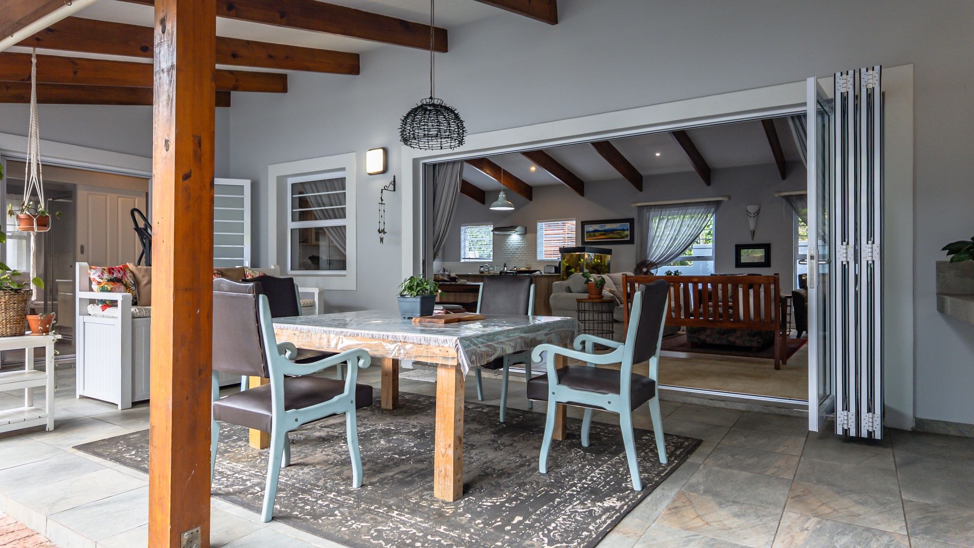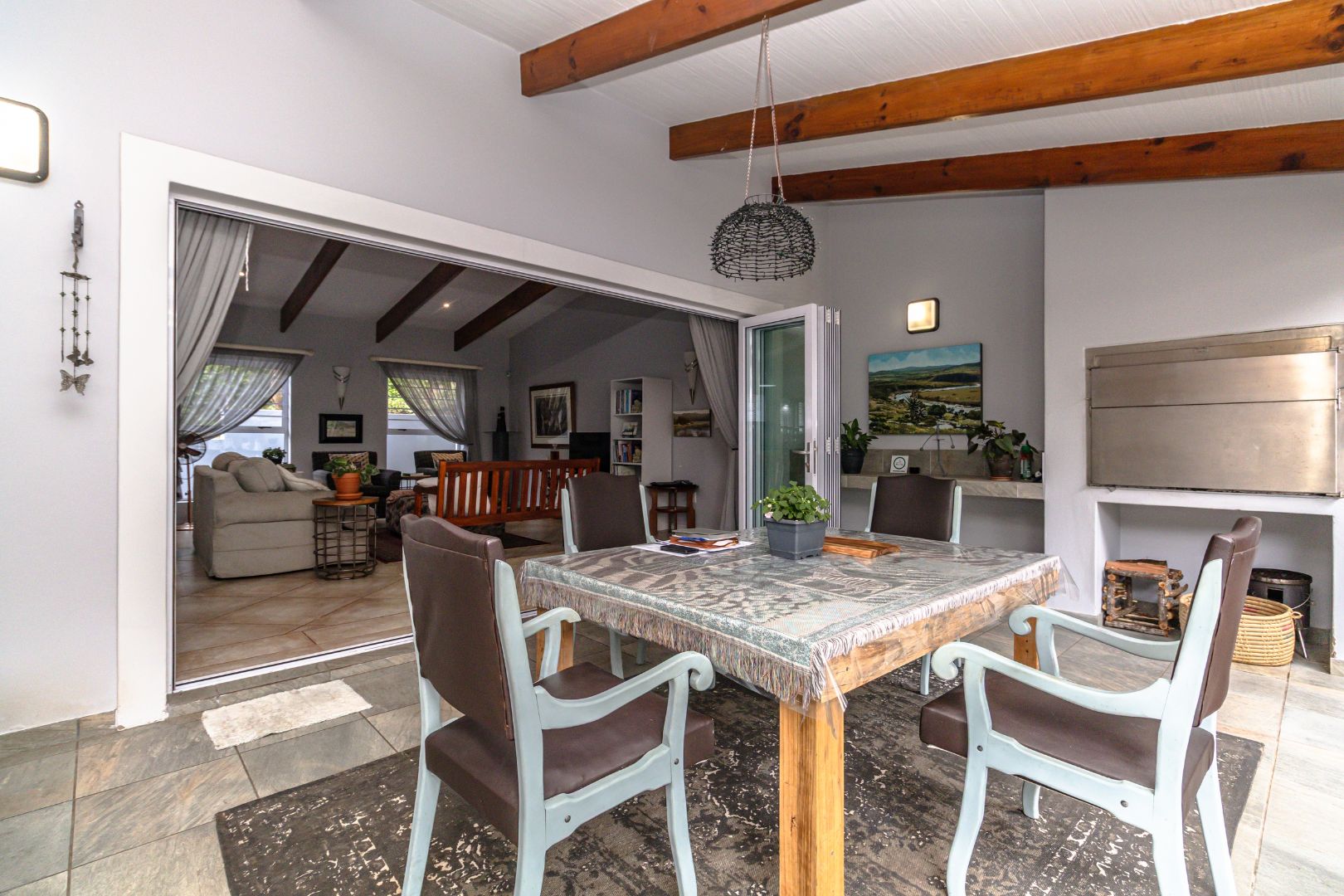 Exclusive Mandate.This modern residential property in Sedgefield Central offers a harmonious blend of comfort and contemporary living. Boasting a well-maintained exterior with a light-colored facade, dark grey roof, and extensive brick paving, the home presents excellent kerb appeal. A large attached double garage and ample parking for four vehicles ensure convenience. Lush, established gardens, complete with an irrigation system and borehole, create a serene outdoor environment, enhanced by mature trees and vibrant plantings.