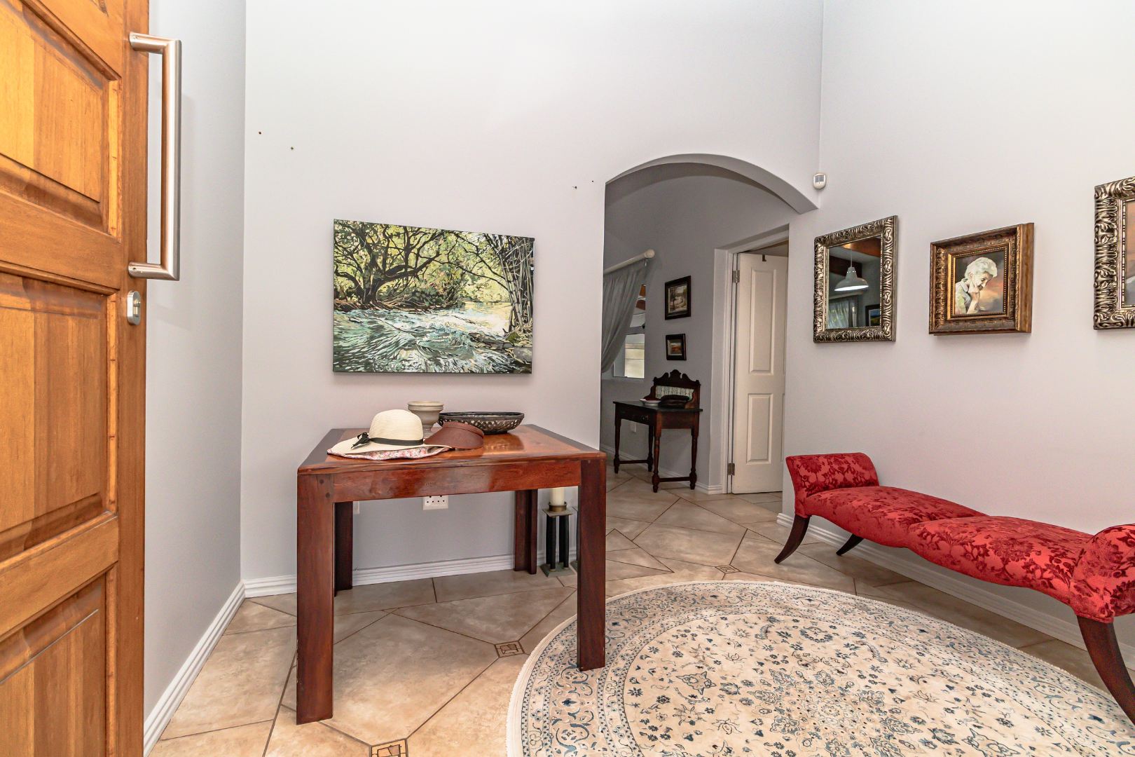 Sustainability and security are paramount. The property benefits from water tanks, a solar geyser, and a battery inverter, promoting energy efficiency and water independence. Security features include an alarm system and security gates, ensuring peace of mind. Fibre connectivity is available, catering to modern lifestyle needs. The property is also wheelchair-friendly and pet-friendly, with a secure fence. Additional amenities include a laundry, storage, and a wendy house.