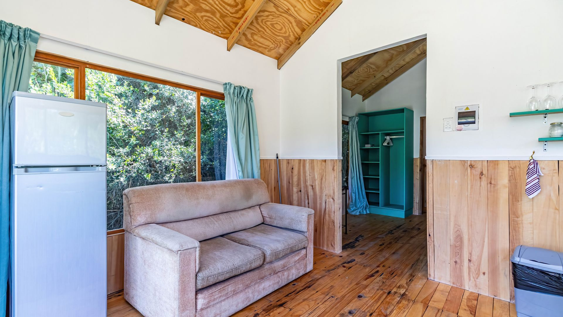 6. River Cottage A – 1 bedroom, 1 bathroom, open-plan kitchen & living, sliding doors to river-view verandah, solar/inverter power, gas geyser & cooker.