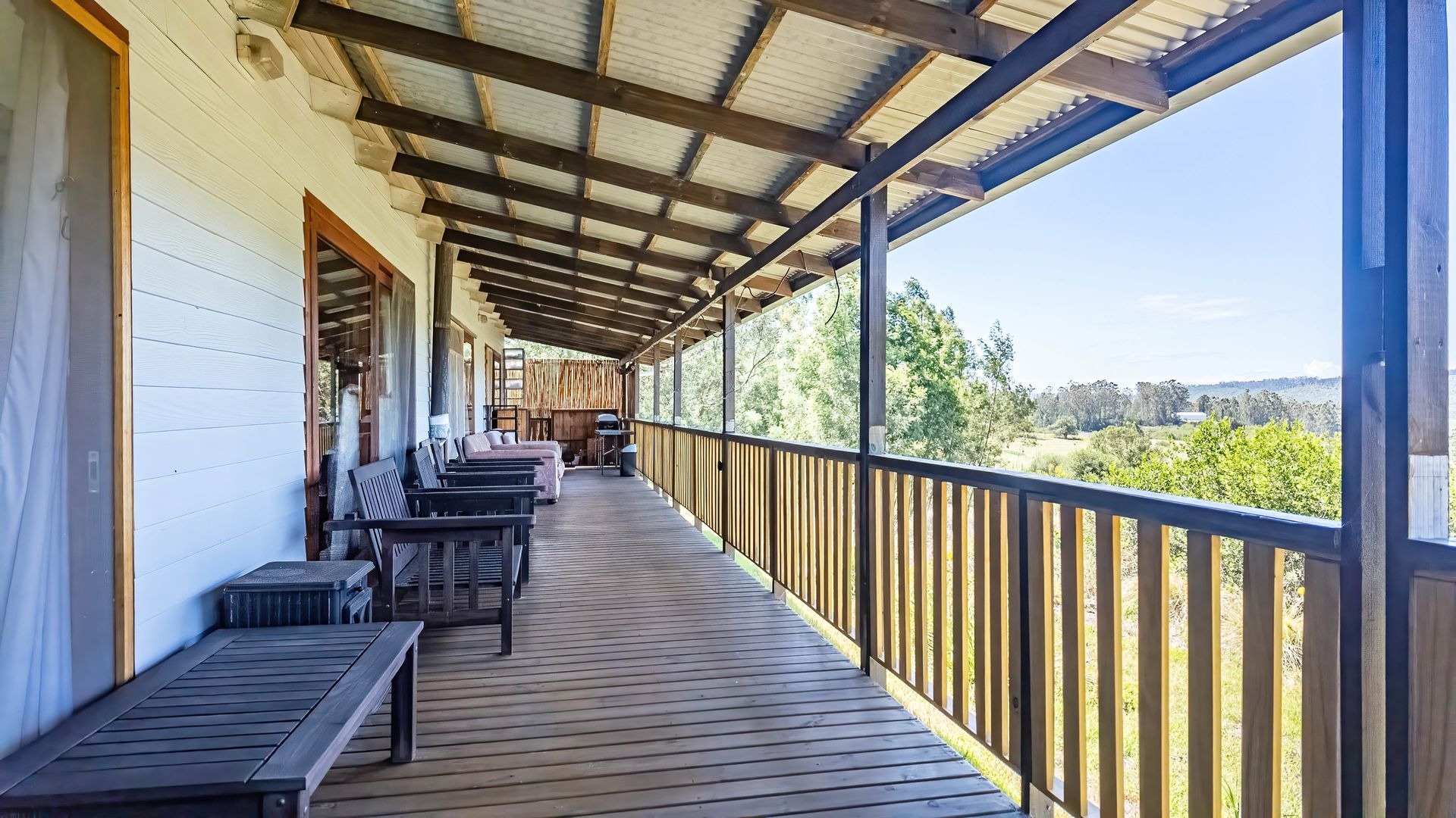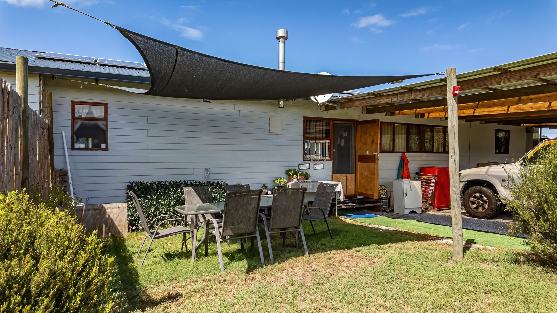 2. Second Hiltop House – 2 bedrooms, 1 bathroom, open-plan living area, verandah with river views, gas utilities, shared 5kW solar/inverter, 5,000L water tank, single carport.