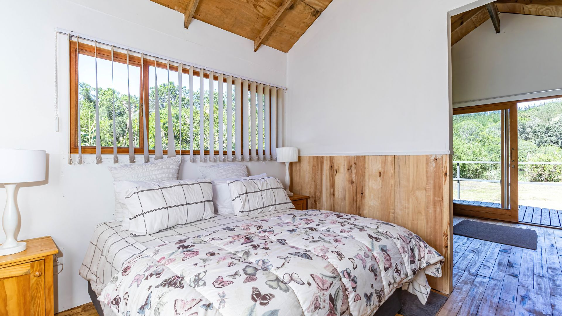 7. River Cottage B – 1 bedroom, 1 bathroom, open-plan kitchen & living, sliding doors to river-view verandah, solar/inverter power, gas geyser & cooker.