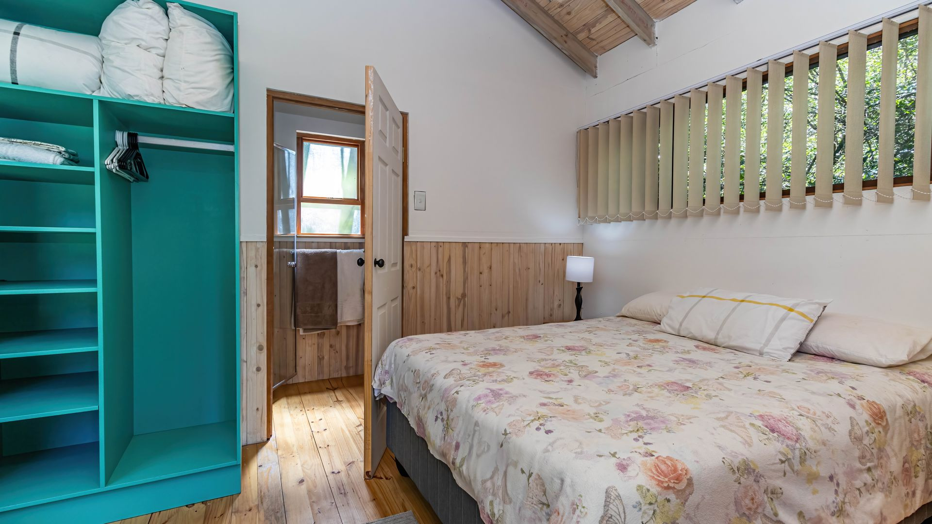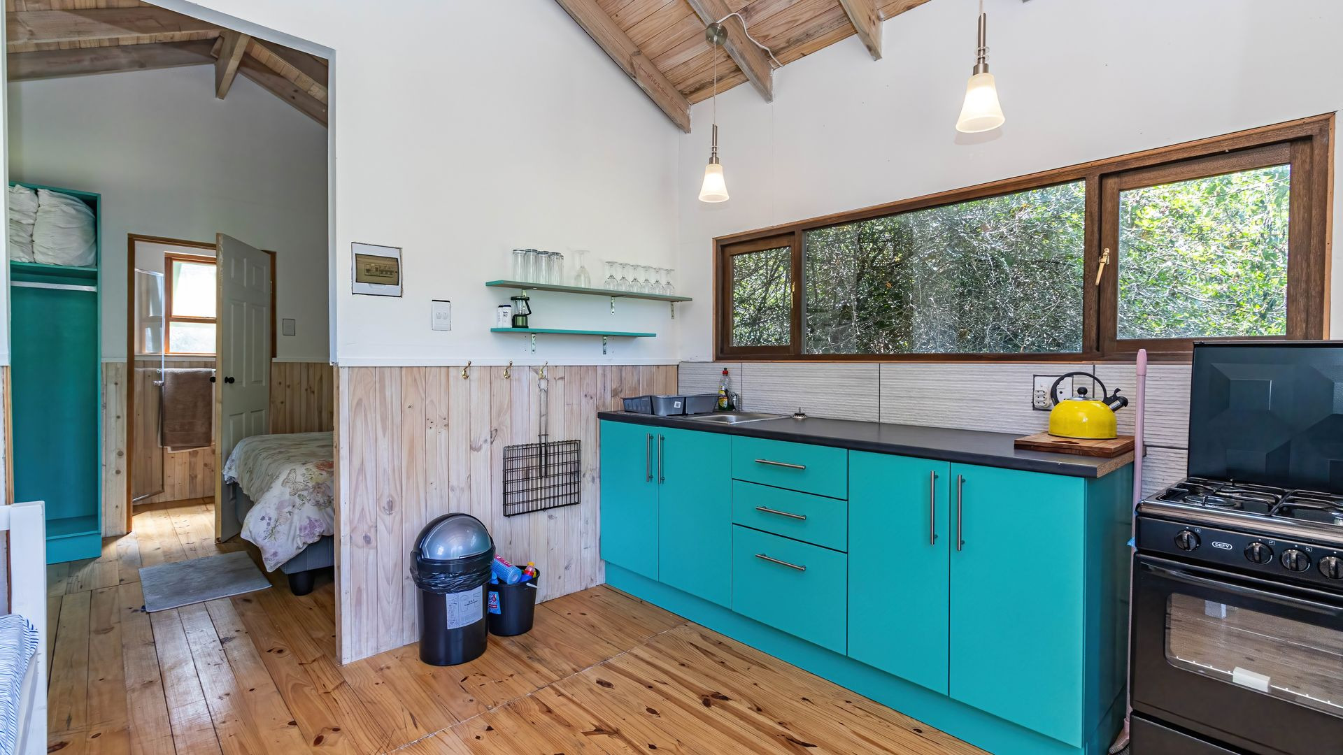 7. River Cottage B – 1 bedroom, 1 bathroom, open-plan kitchen & living, sliding doors to river-view verandah, solar/inverter power, gas geyser & cooker.