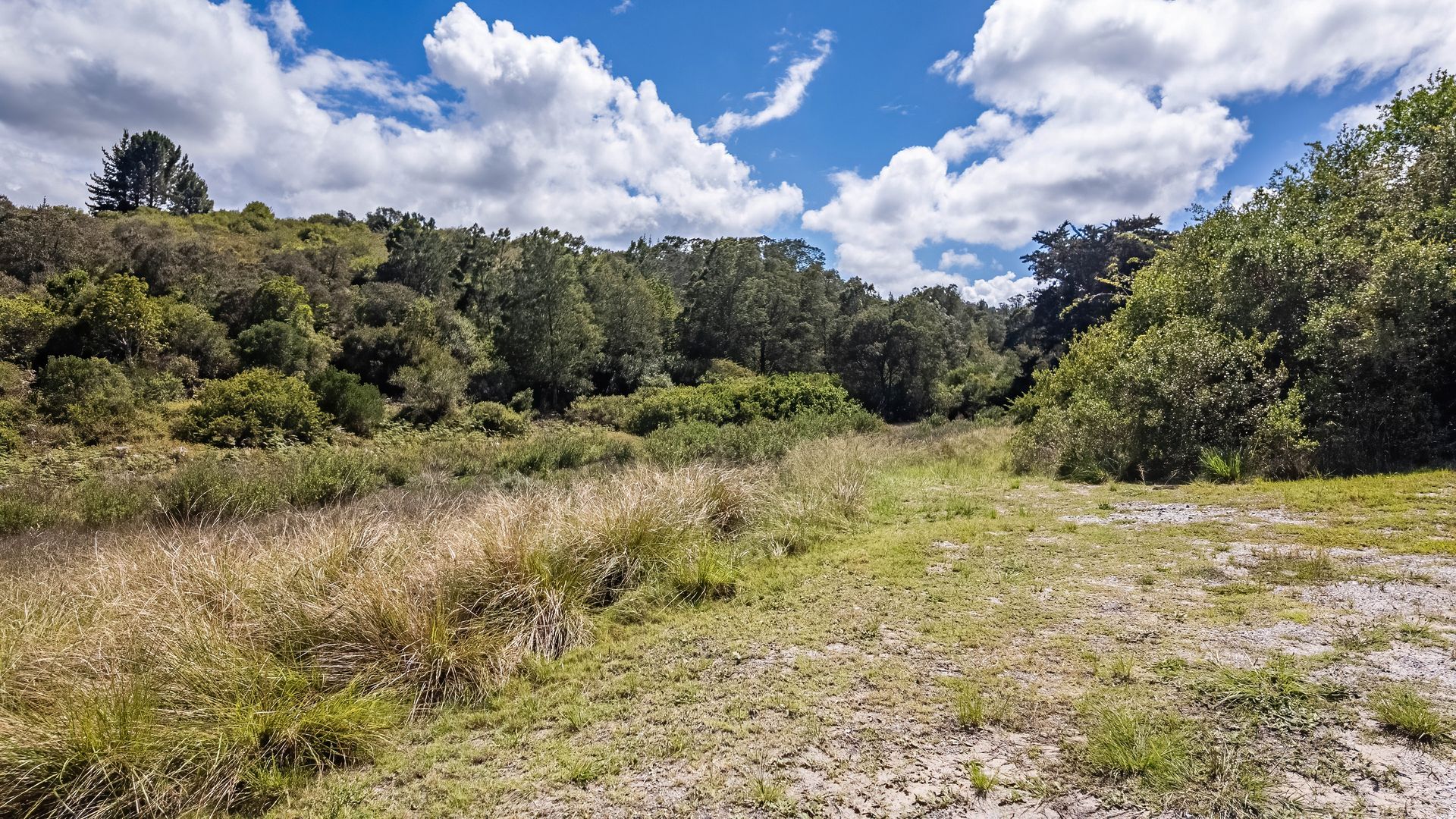 Across the road, a further ±51ha is currently leased to an exceptional tenant operating a professional horse-breeding programme with export capability. The lease runs until 31 May 2029, with the tenant having already expressed interest in extending, leaving the future choice to the new owner. Although this section is sold as “vacant land”, it benefits from two existing structures: a well-maintained two-bedroom, two-bathroom home (220m2) with a large open-plan living/dining/kitchen area, beautiful valley and river views, solar/inverter power and a carport, as well as an older labourer’s cottage near the Karatara access road that could be renovated. Water security is supported by two boreholes and a water spike delivering several hours of flow per day. Natural features include forest trails, grazing fields and a ravine-based dam, roughly 90% complete and perfectly placed for future restoration or enlargement, with natural water channels feeding through the land and excellent terrain for outdoor adventure activities.