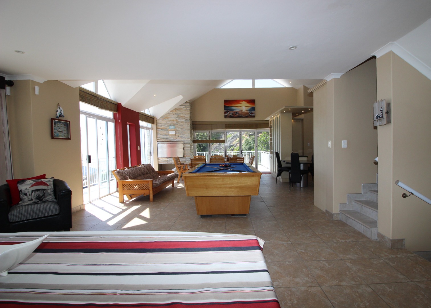 Step outside onto your expansive private deck, where the true magic of coastal living comes to life. Here, you'll find a built-in braai, perfect for hosting summer braais and evening gatherings under starlit skies. Enjoy alfresco dining while soaking in the tranquil sounds of the waves and the refreshing sea breeze against your skin. The panoramic views of the ocean create an enchanting backdrop for your outdoor lifestyle, making every moment spent here unforgettable.
