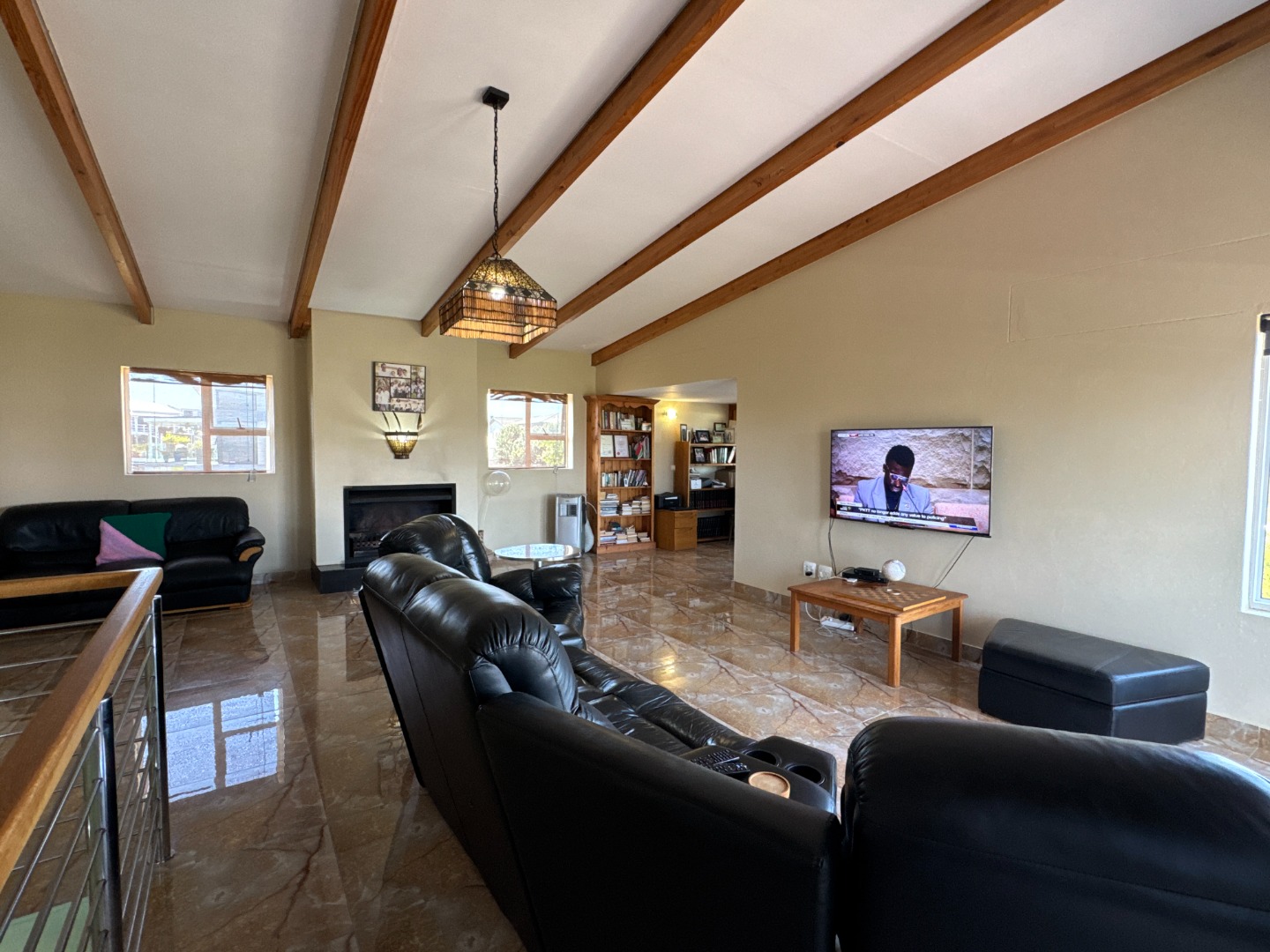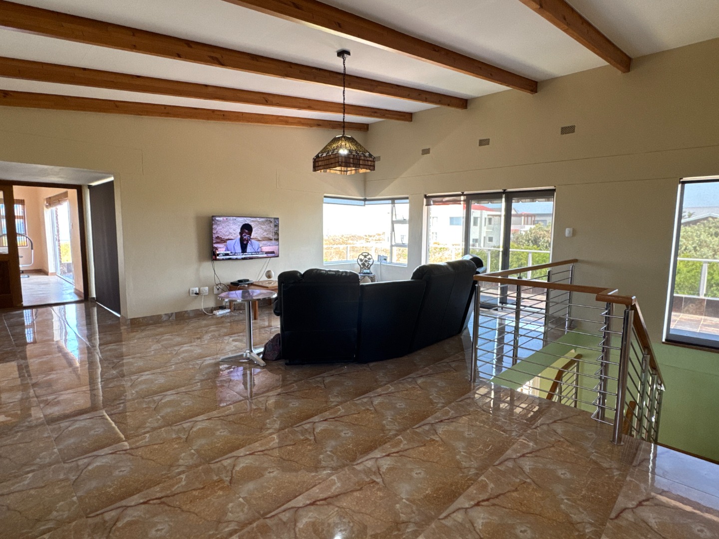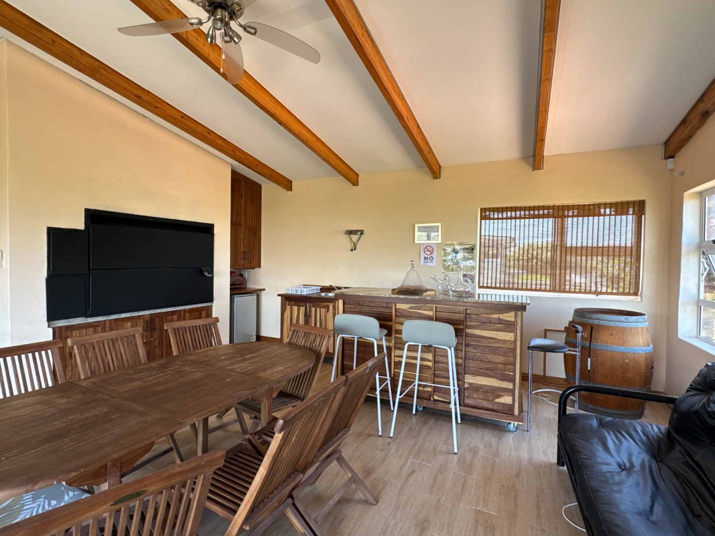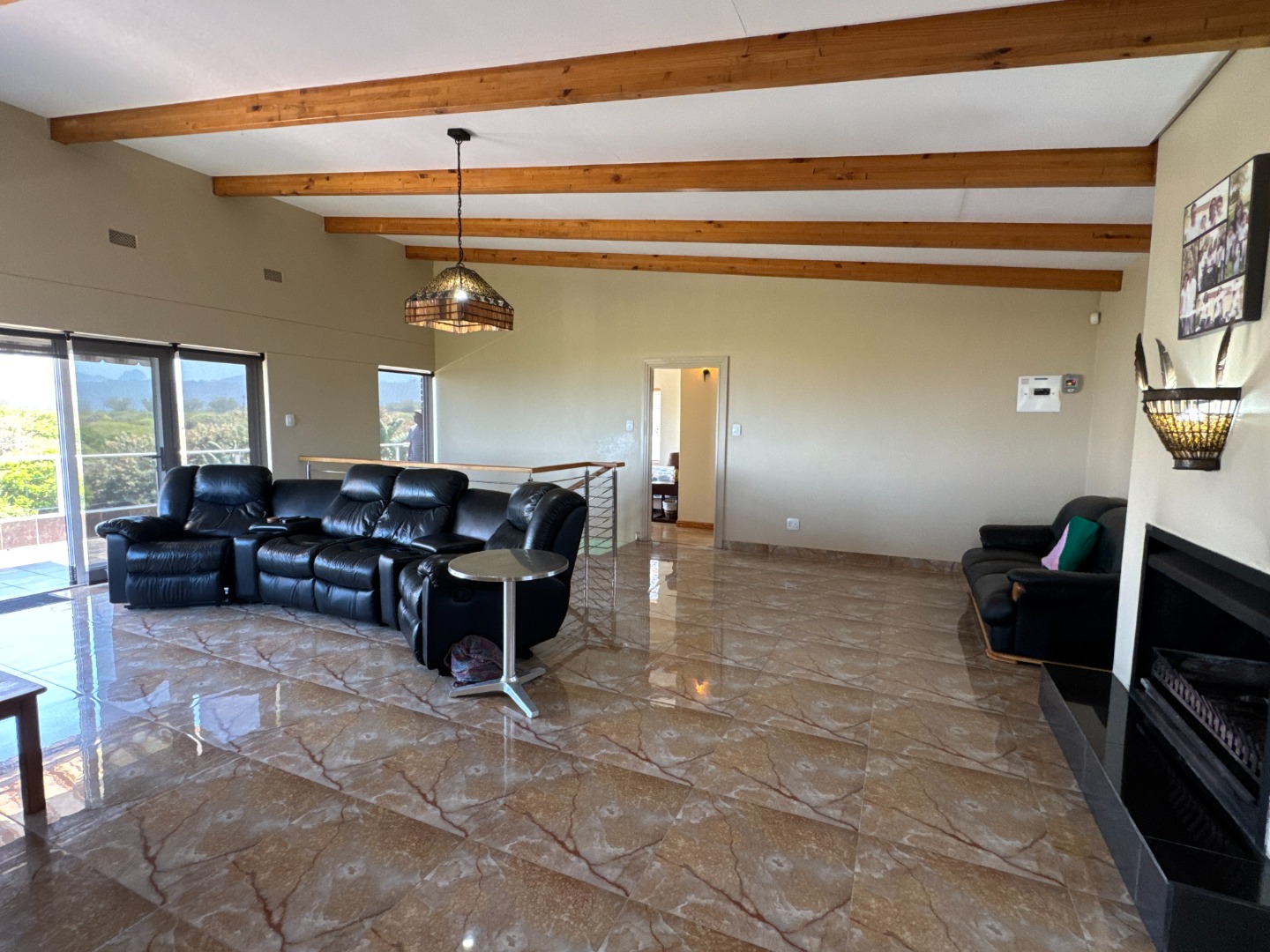 Spacious living areas on the upper level maximize those captivating sea views. The open-plan lounge, complete with a cozy fireplace, connects seamlessly into an entertainment room featuring a built-in braai – perfect for hosting gatherings .