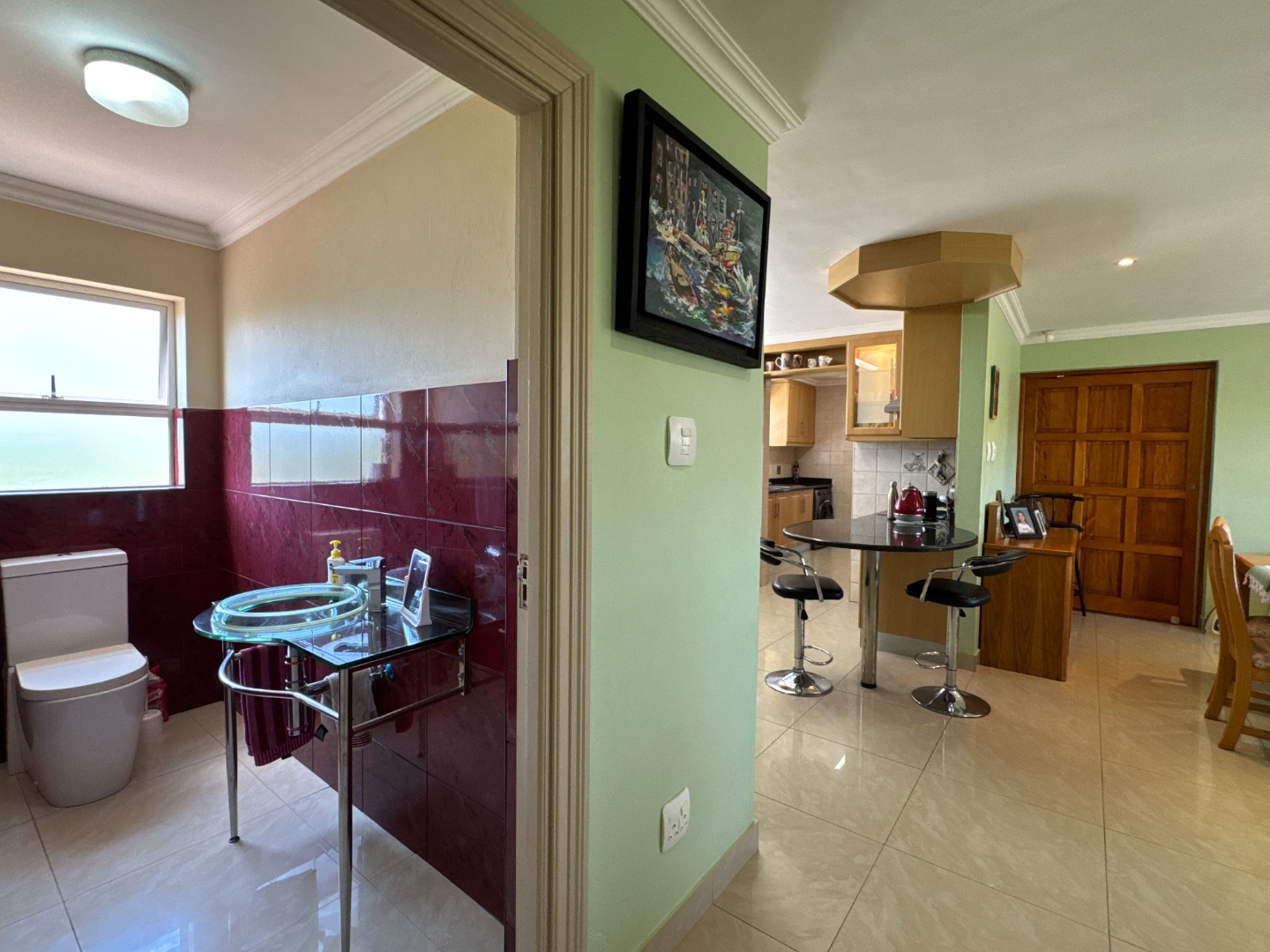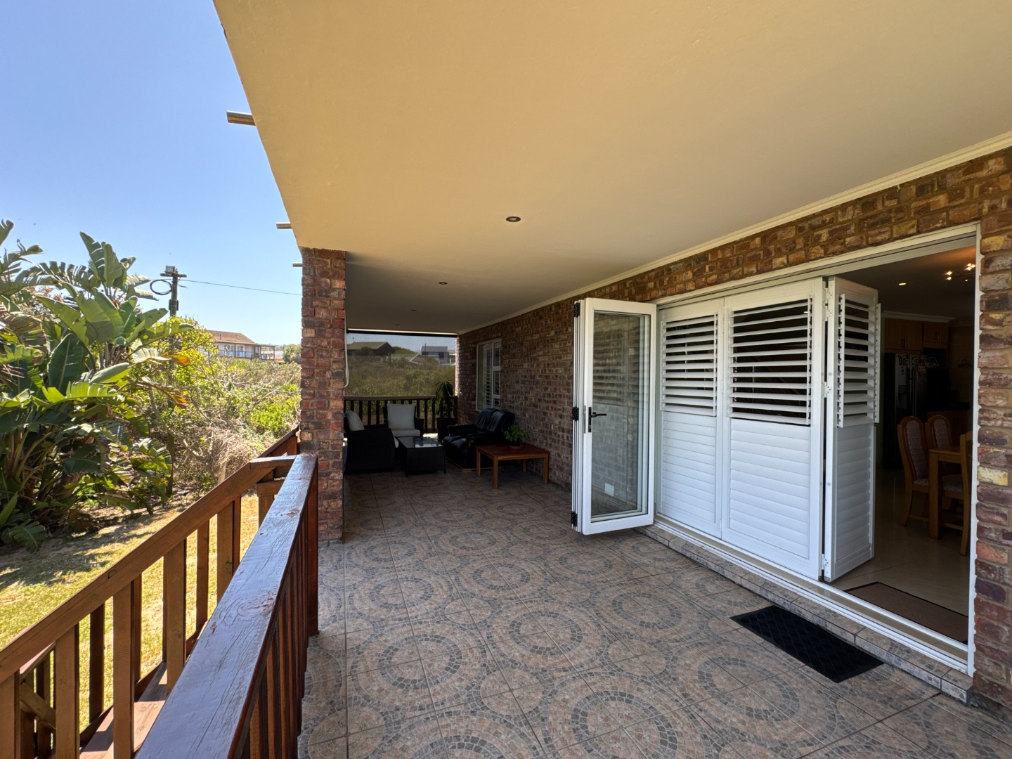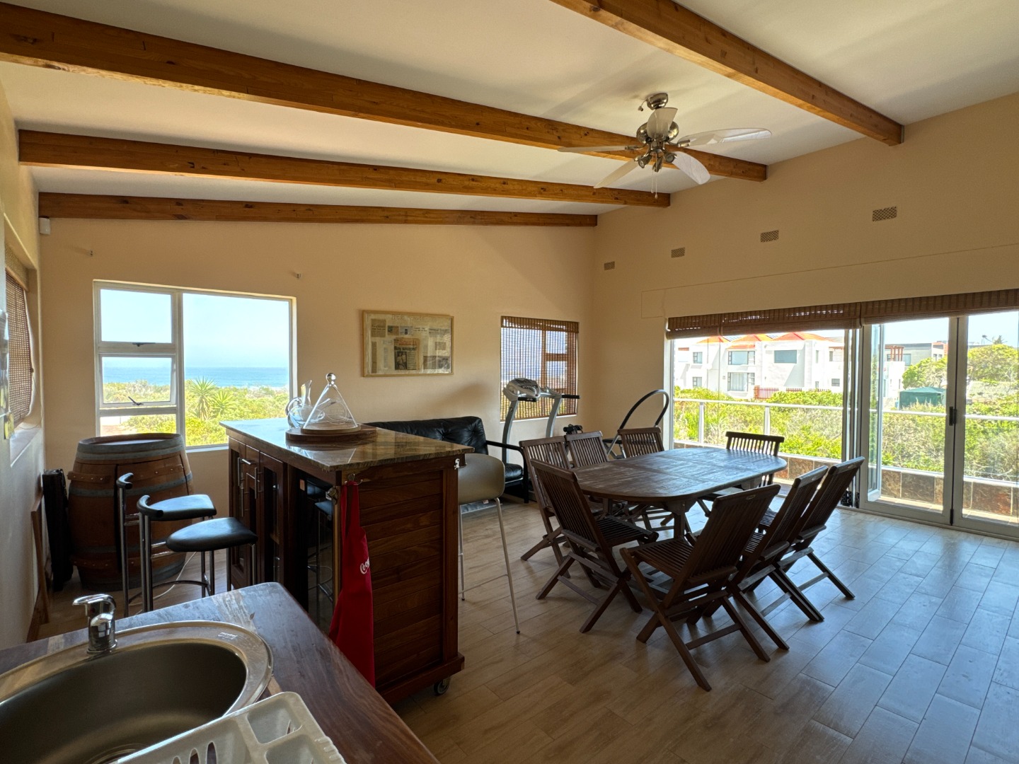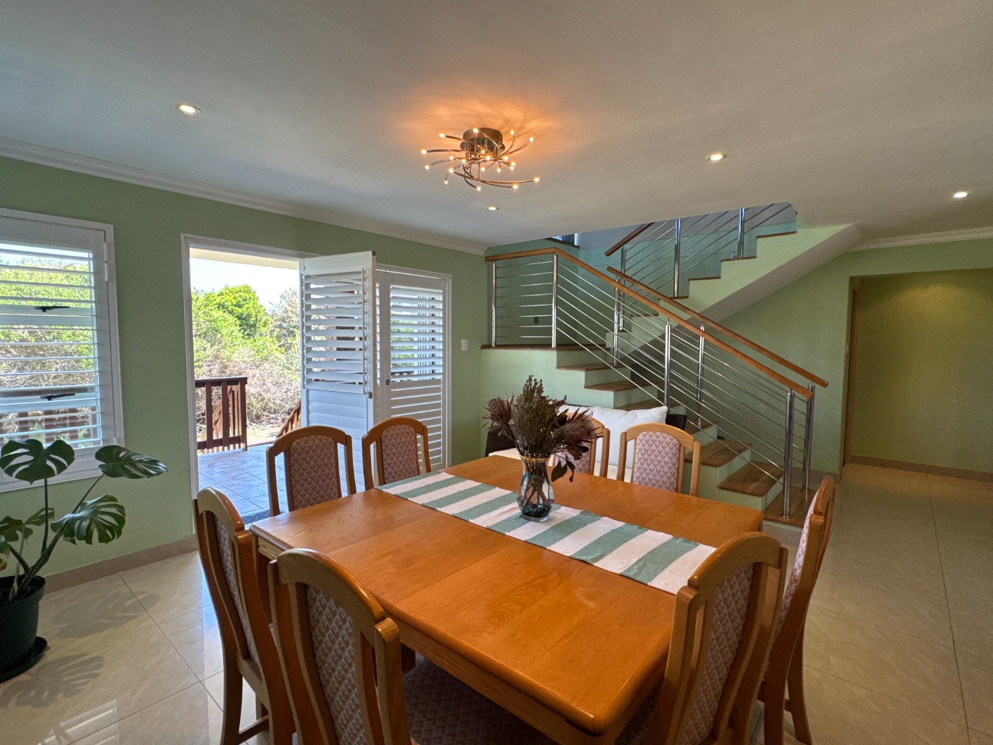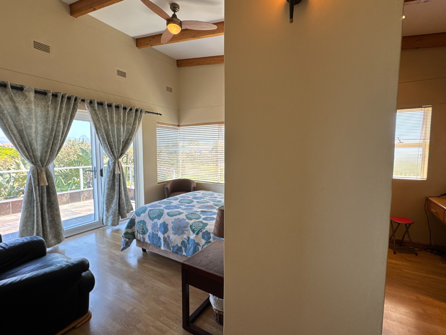 Spacious living areas on the upper level maximize those captivating sea views. The open-plan lounge, complete with a cozy fireplace, connects seamlessly into an entertainment room featuring a built-in braai – perfect for hosting gatherings .