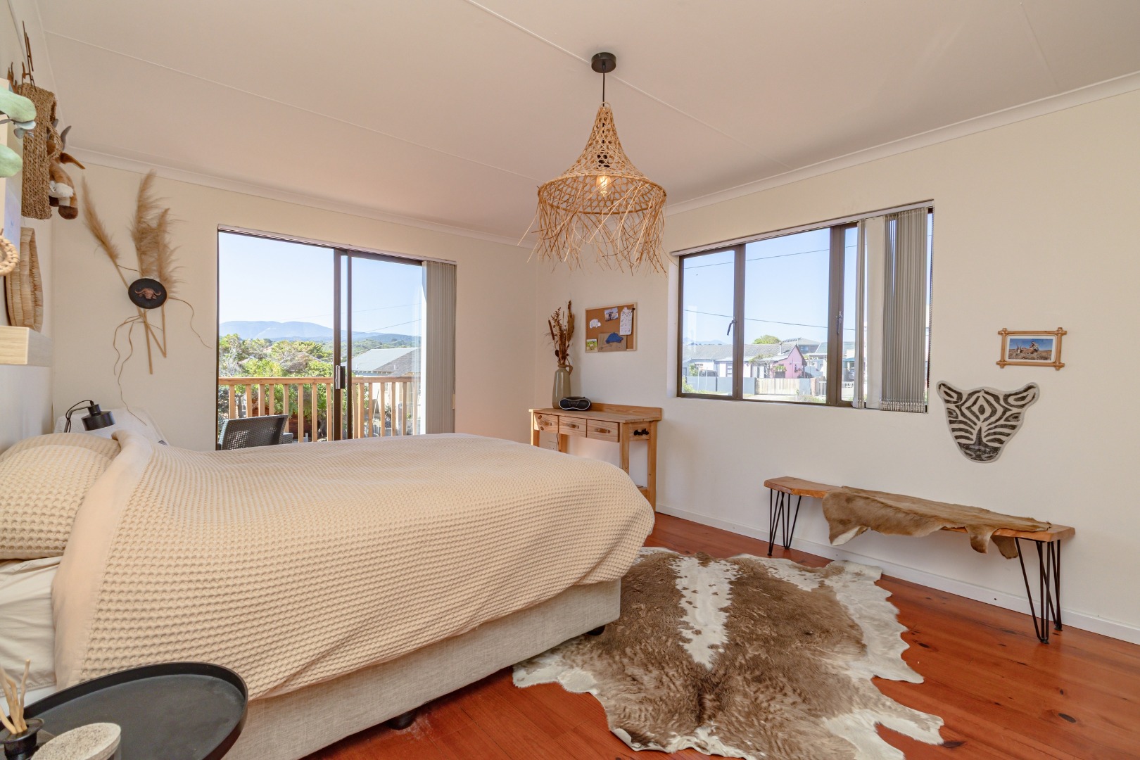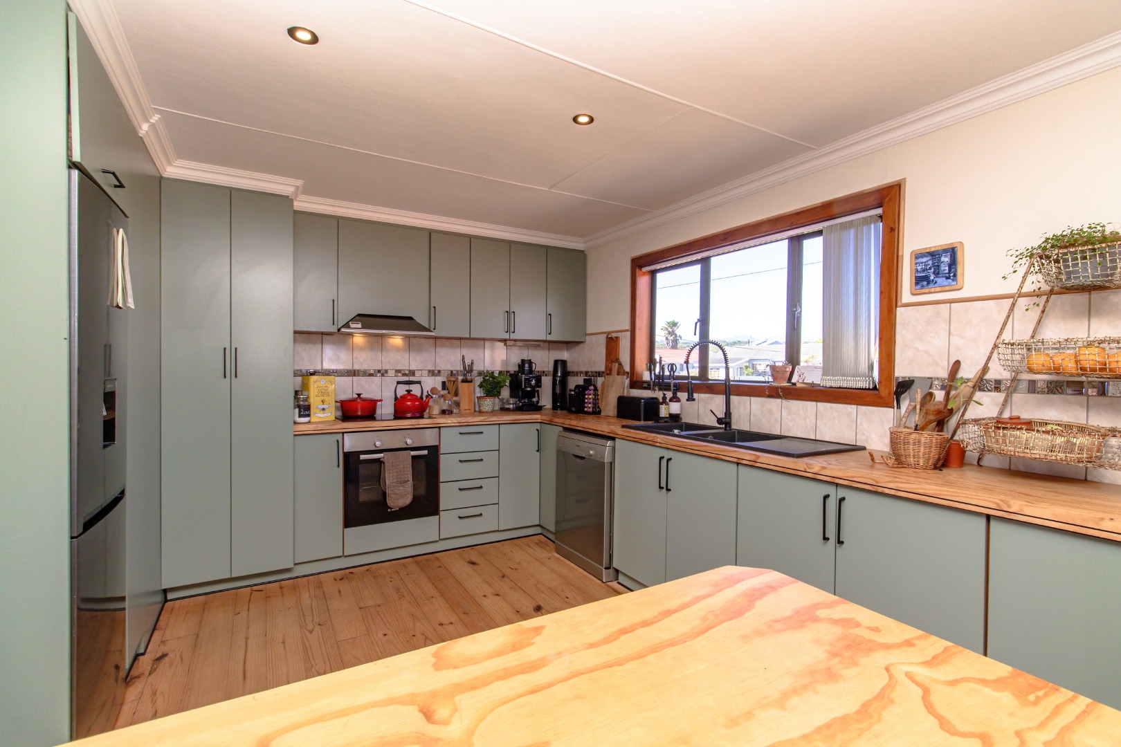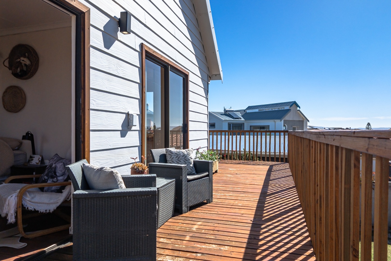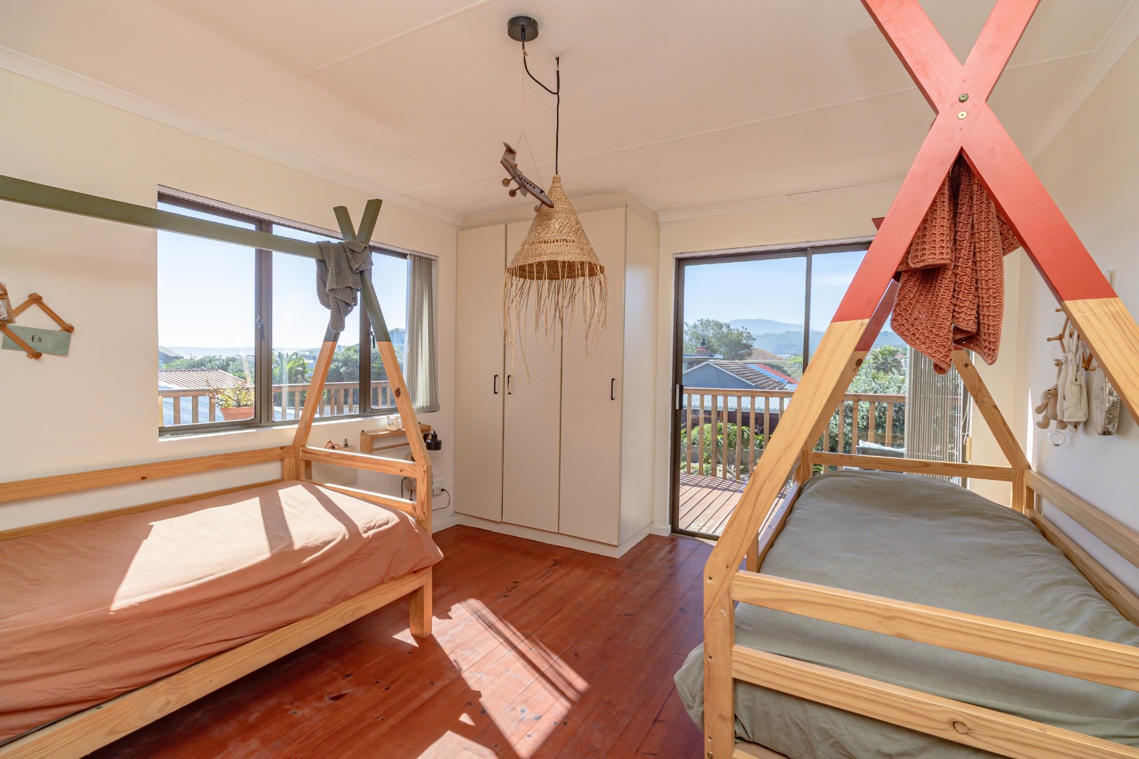 Discover this charming 4-bedroom, 2 bathroom home nestled in the picturesque coastal town of Kleinkrantz, Wilderness. Boasting a modern white exterior with a grey roof, this elevated home offers stunning sea views and a welcoming kerb appeal. The property features an expansive wooden deck, perfect for outdoor living and entertaining, complemented by a paved driveway and two garages.