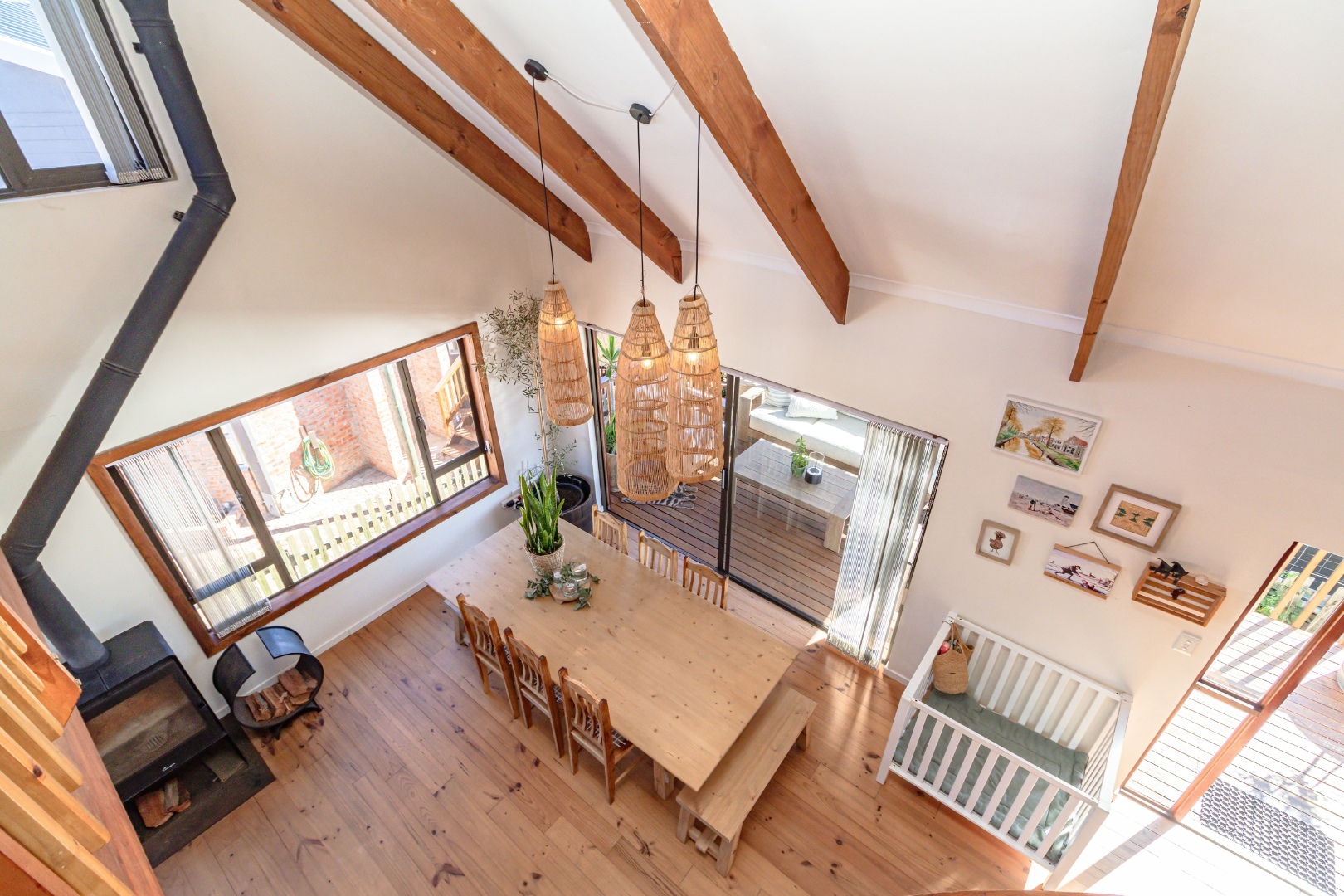 The residence offers four well-appointed bedrooms, including an ensuite, ensuring comfort and privacy for all occupants. The seamless indoor-outdoor flow is enhanced by large sliding doors that connect the living areas to the decking, where you can enjoy panoramic mountain and partial ocean views.