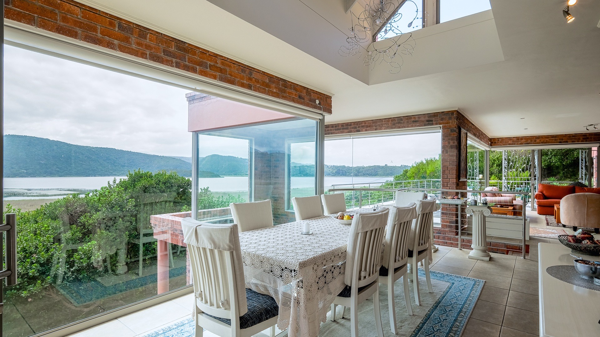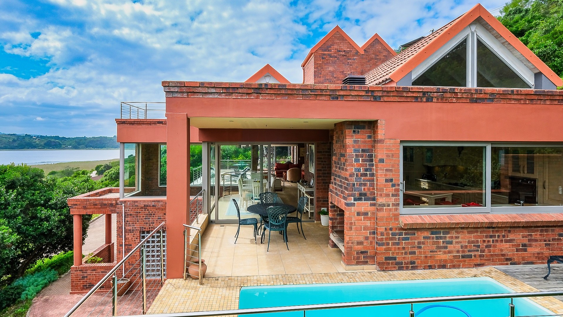 Designed by an award winning architect, this impressive low maintenance north facing home is built on a hillside to take advantage of the views of Island lake and distant Outeniqua mountains.