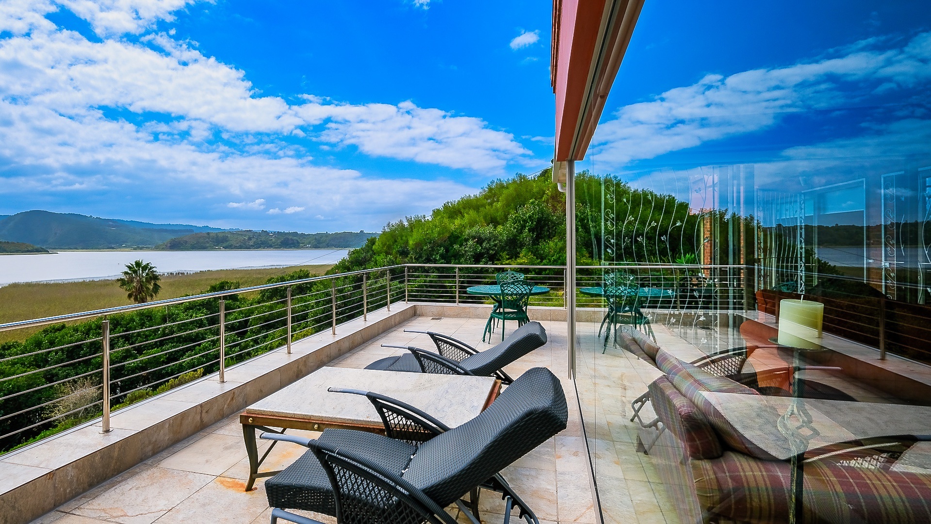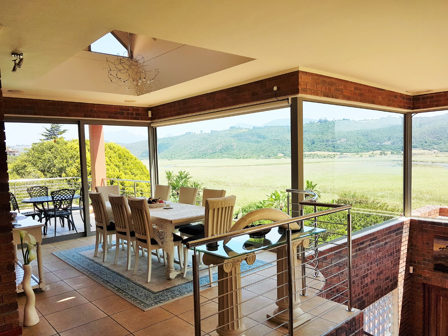 The open plan living areas which lead to spacious patios, provide ample space for outdoor and indoor entertaining and relaxation while enjoying the breath taking views. The various patios provide you with a magical place to savour your first cup of coffee at day break or sundowners in the early evening and take in the ever-changing landscape and call of the abundant birdlife.