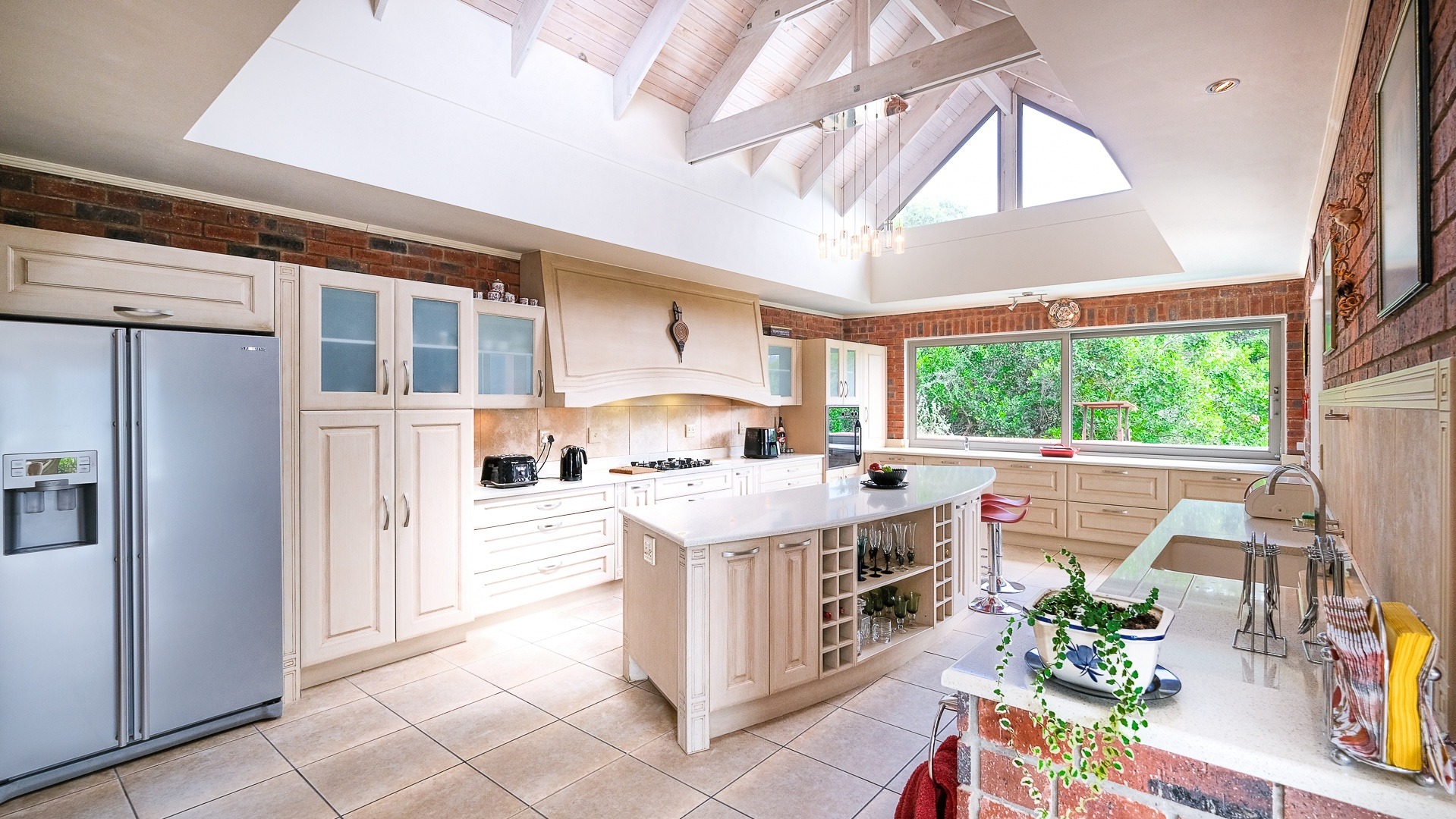 There are many extras such as rain water tanks and irrigation system for the terraced, indigenous garden, storage/wine cellar, inverter with battery and good security. Automated blinds can conveniently be closed or open at the touch of a button.