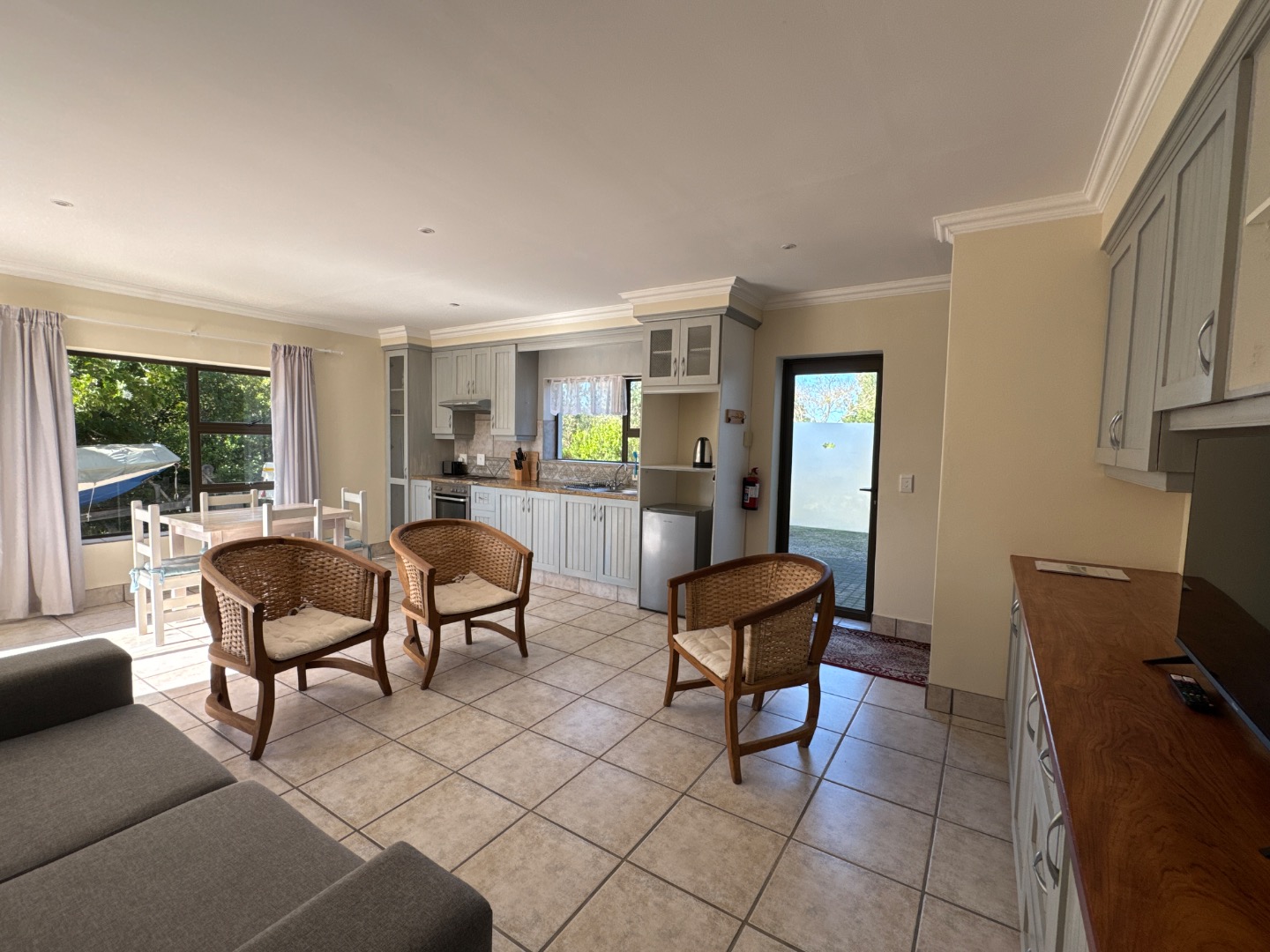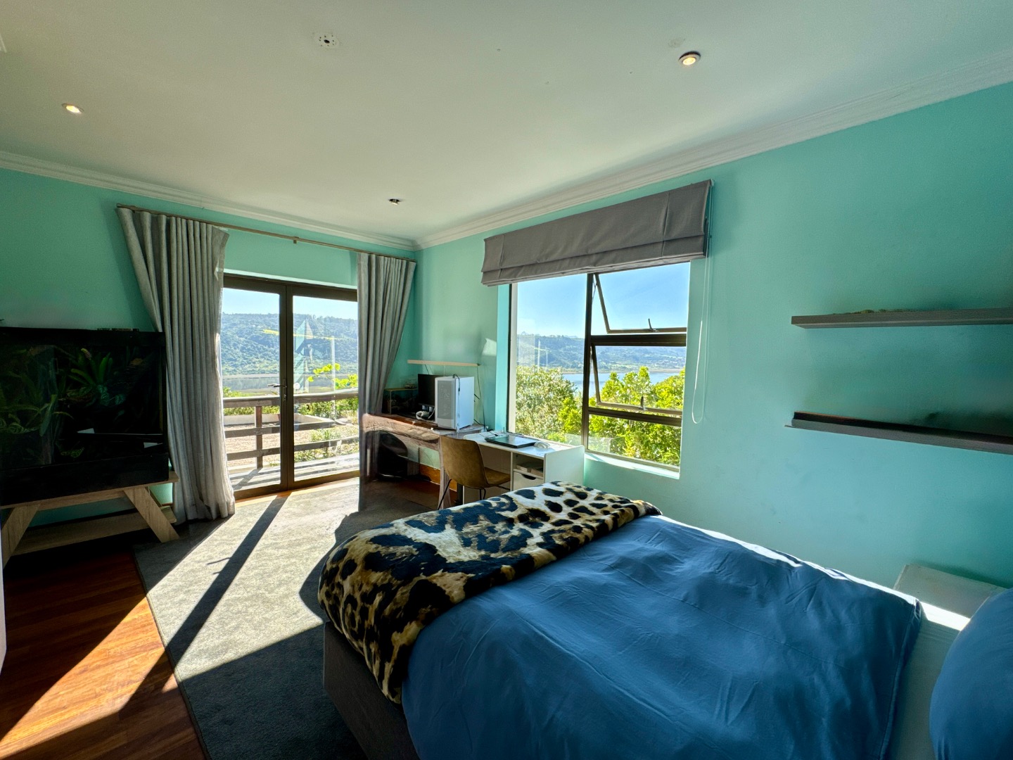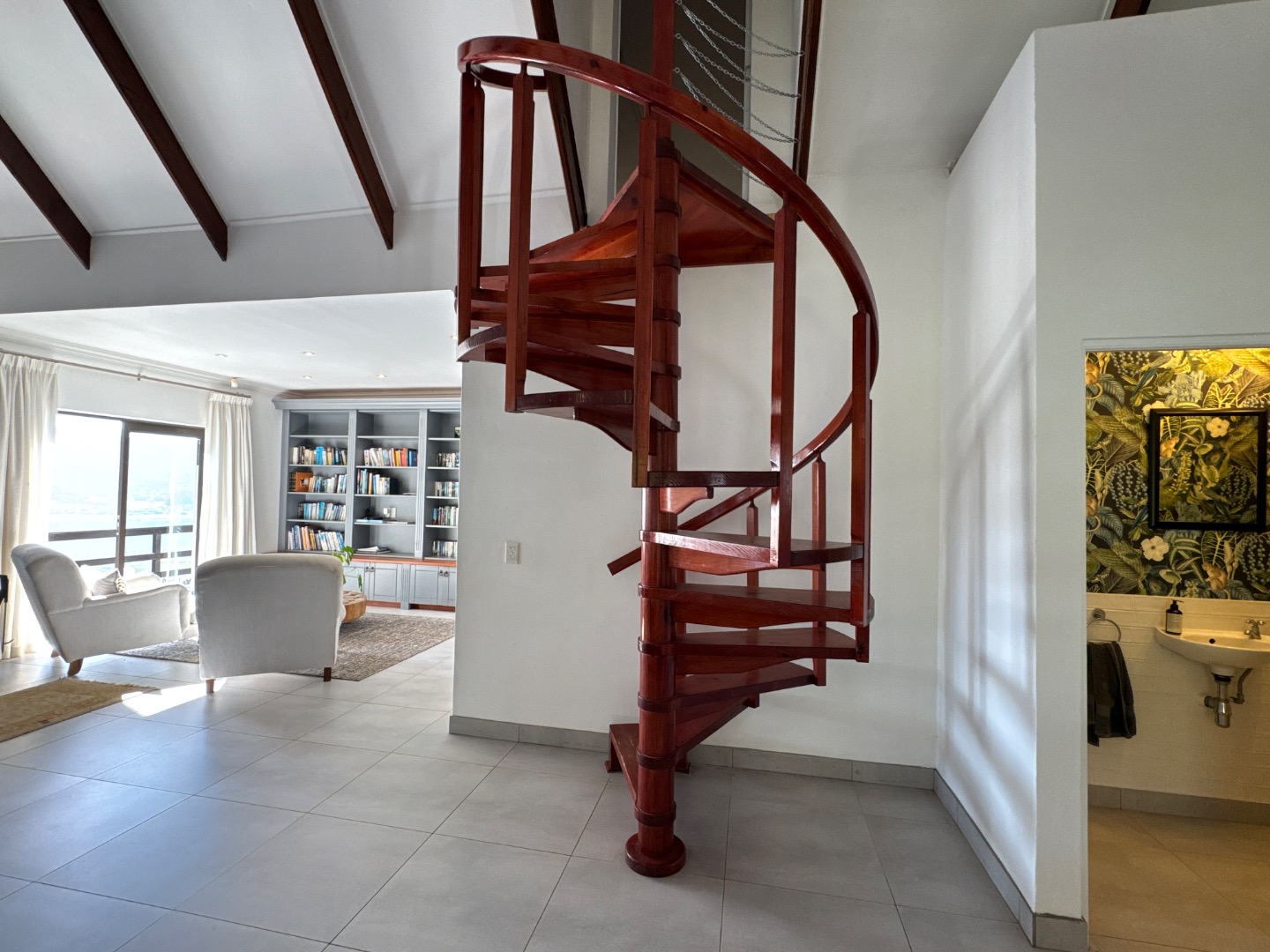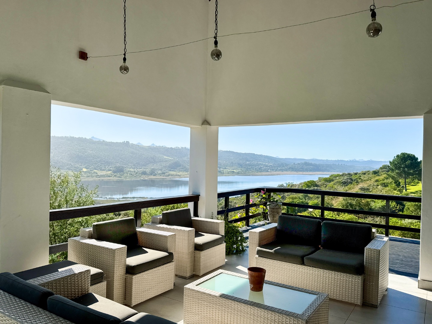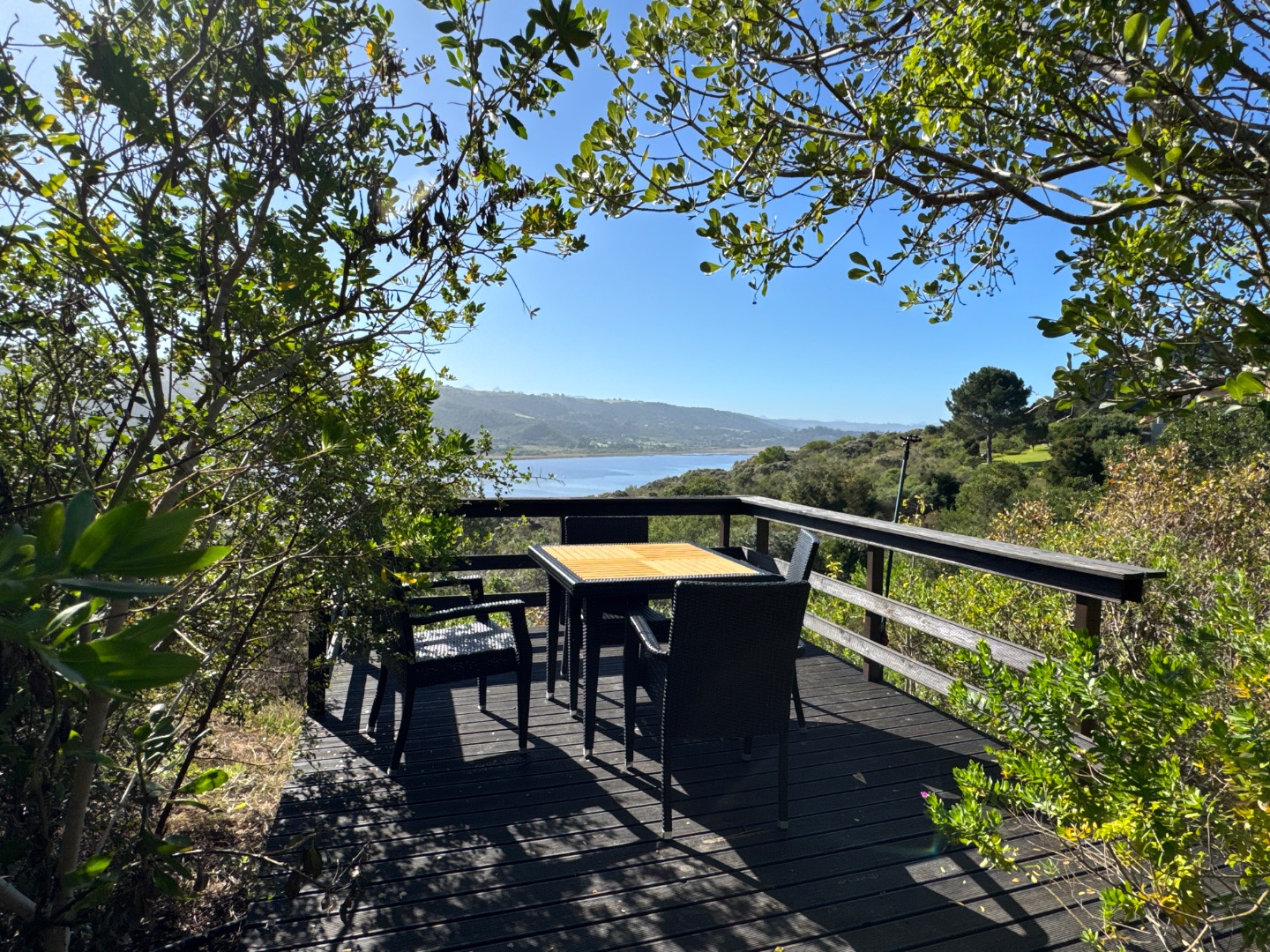 Nestled in the tranquil surrounds of Wilderness National Park, this modern home offers breathtaking views of Bo-Langvlei Lake from its elevated position on 1.5 hectares of lush land. Designed to capture the beauty of its natural setting, the north-facing residence features spacious, light-filled living areas with soaring vaulted ceilings, creating an airy and welcoming atmosphere.