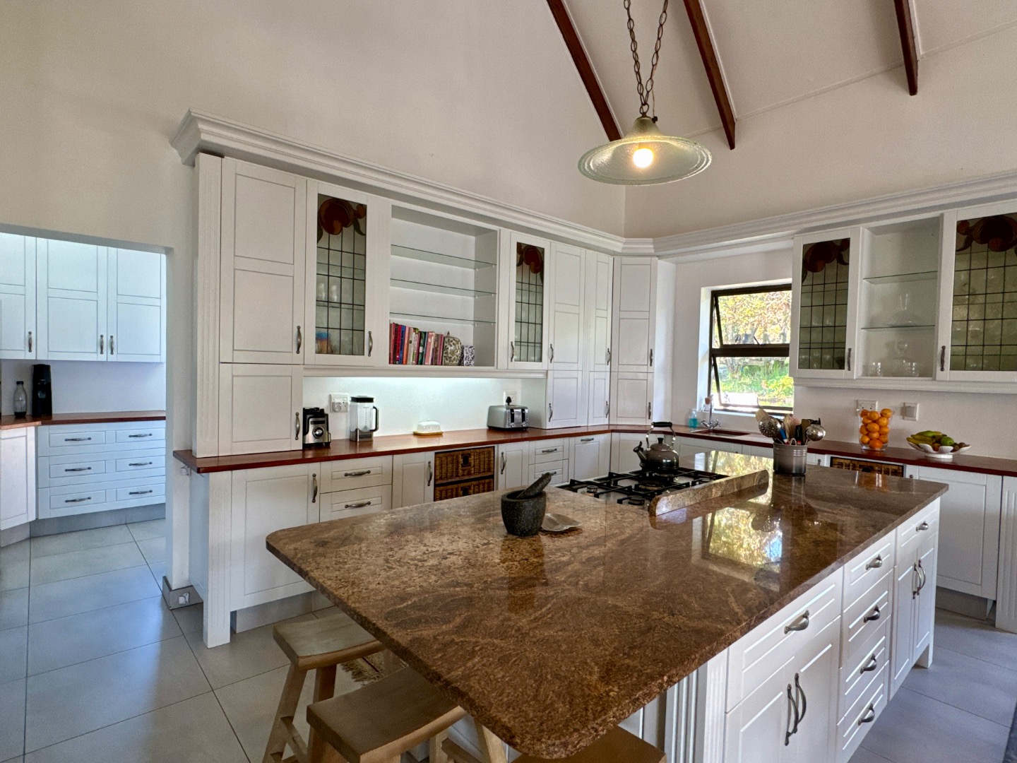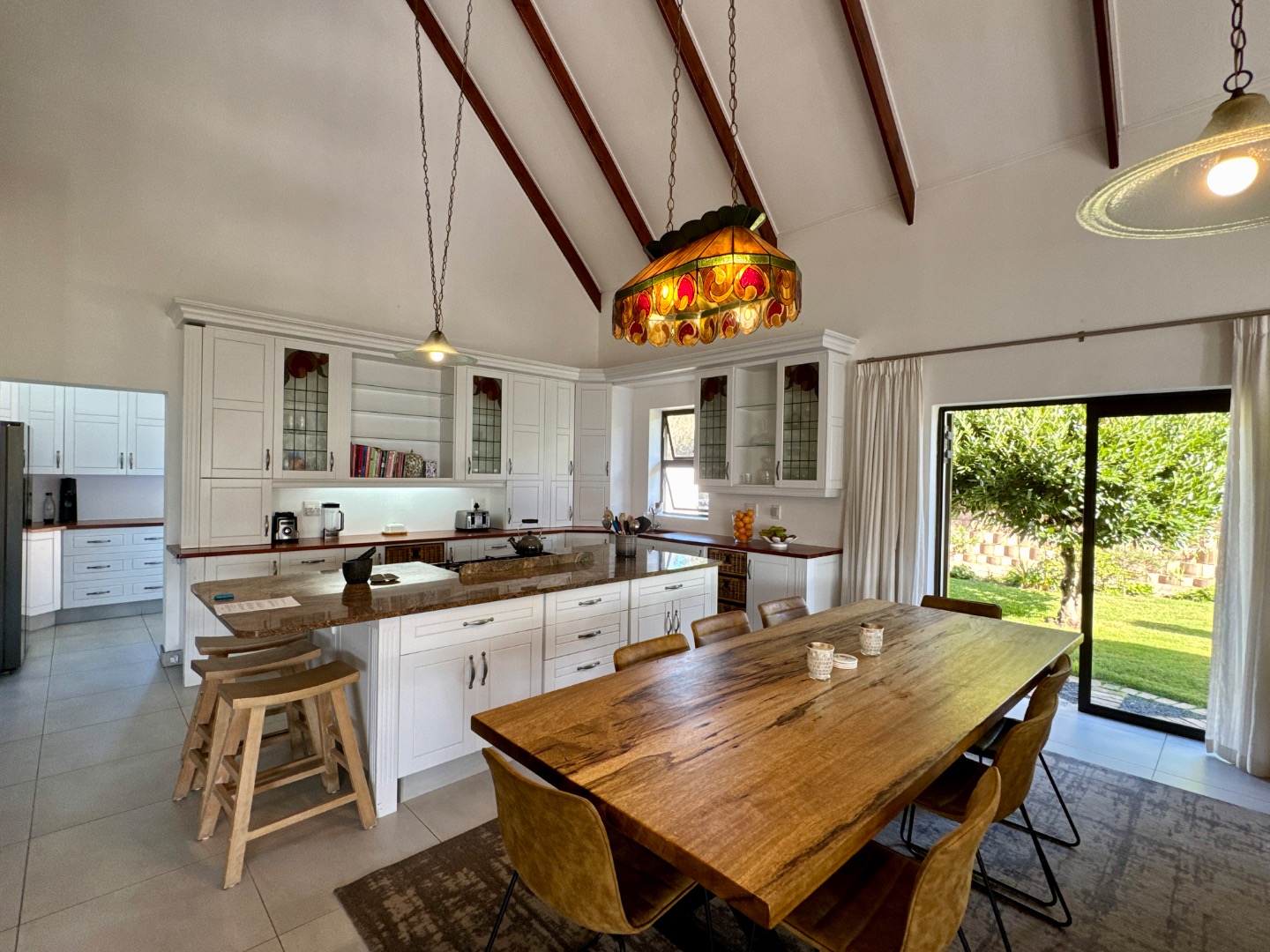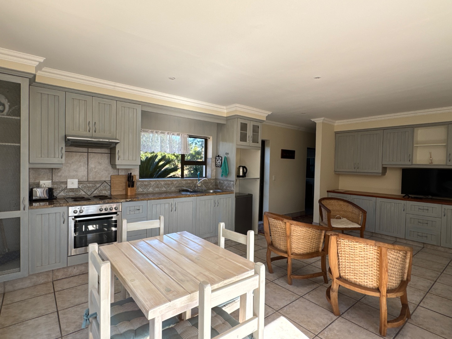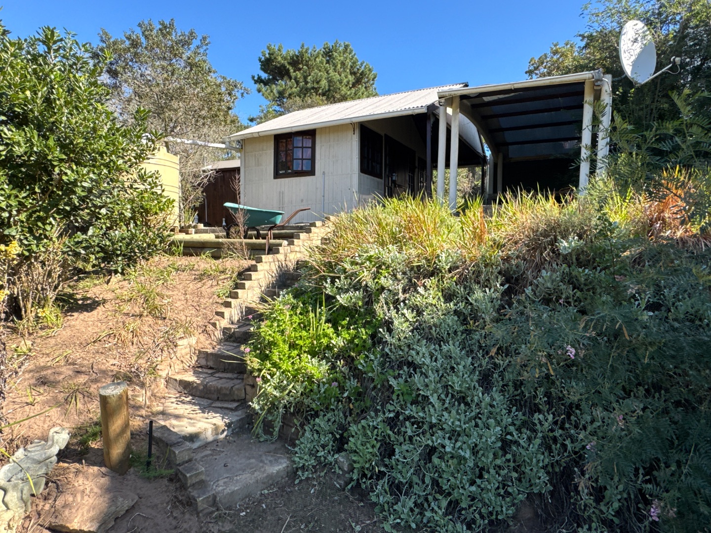 The home is fully off-grid, powered by a robust solar system with 14 panels, an 8.8kVA Sunsynk inverter, and three batteries, ensuring energy independence. Water is supplied from five 5,000-liter tanks and a borehole, supporting sustainable living. Fully fenced for privacy and security, the property also has approved plans for an outdoor entertainment area with a swimming pool, further enhancing its appeal.