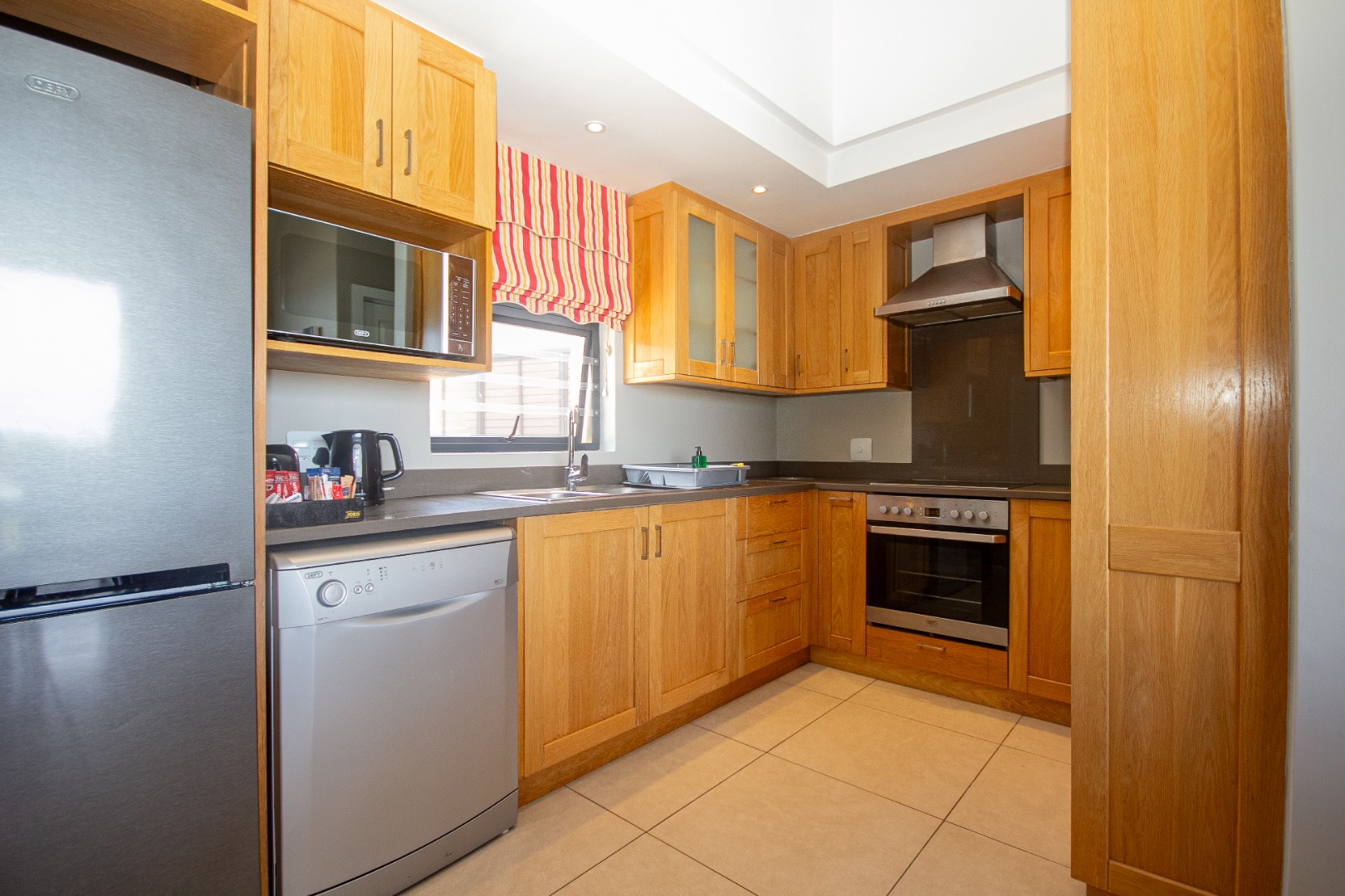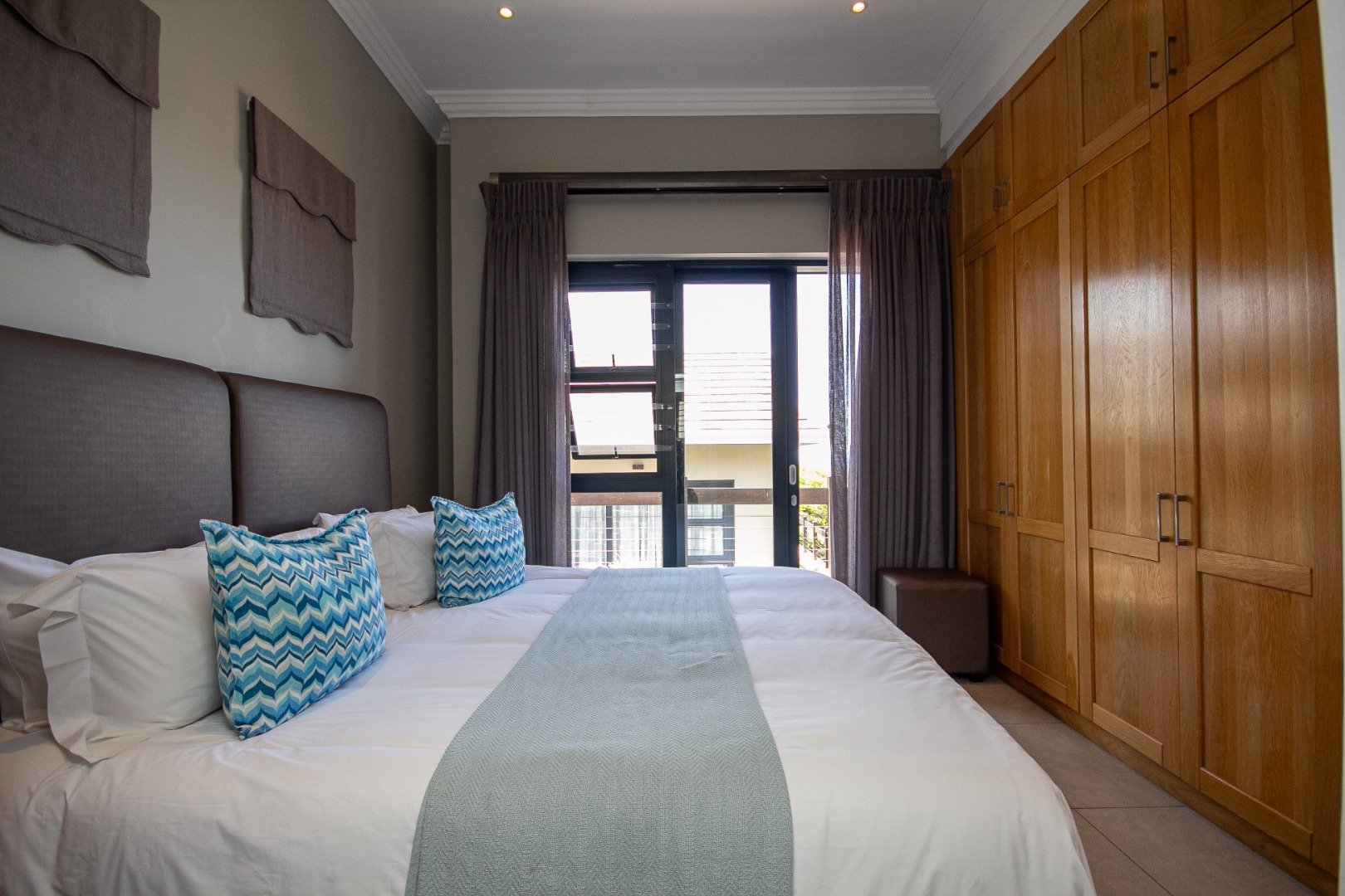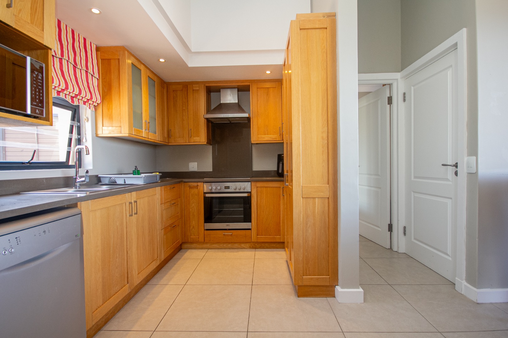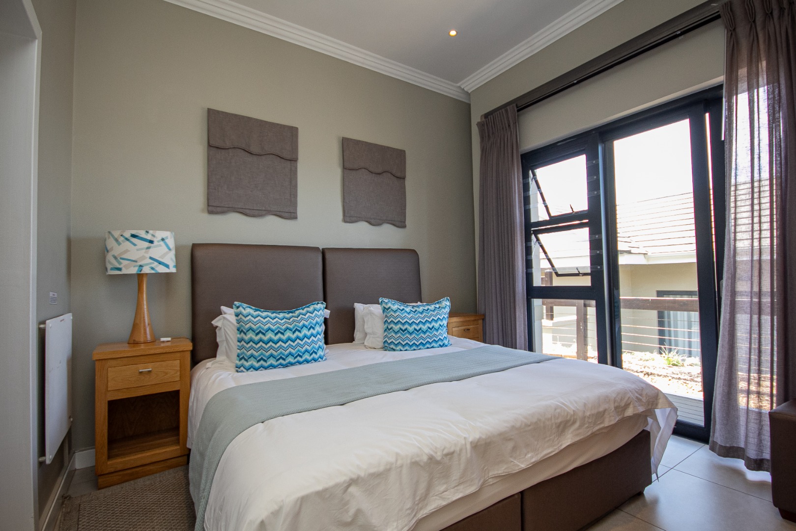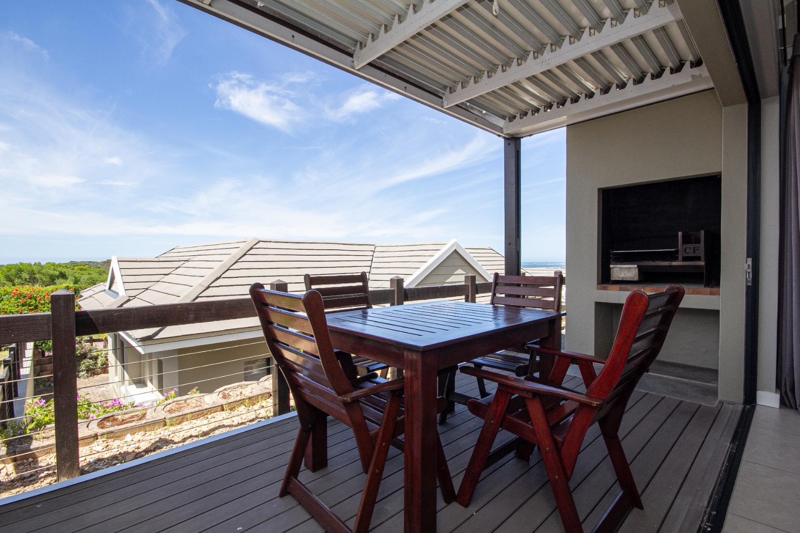 This inviting 1 bedroom, 1 bathroom rental in Brenton On Sea offers relaxed coastal living with a generous 168 sqm floor size. The open plan layout connects the lounge, dining area, and kitchen, with large glass doors that fill the space with natural light and open to the outdoor area. The modern kitchen includes stainless steel appliances, light wood cabinetry, and dark countertops.