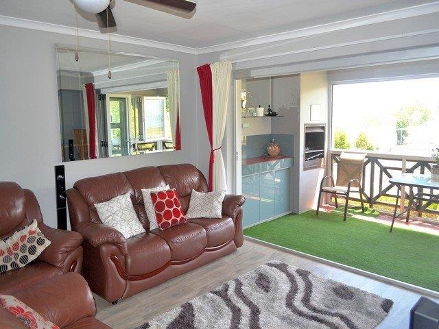 Discover this inviting 3-bedroom, 2-bathroom apartment in a secure gated community in Knysna Central. The open-plan living, dining, and kitchen area creates a spacious environment. Modern wood laminate flooring complements the well-appointed kitchen, featuring dark countertops, white cabinetry, a breakfast bar, and integrated laundry facilities. One bathroom is en-suite, offering added privacy. Enjoy seamless indoor-outdoor living with large sliding and bifold doors opening onto an expansive balcony and patio. This outdoor space is perfect for entertaining, featuring artificial turf, a built-in braai, and an outdoor kitchen/bar setup. Scenic mountain and water views enhance the tranquil atmosphere. Situated within a complex on an island estate, the property offers a unique living experience with enhanced security via an access gate. The apartment is fibre-ready, catering to contemporary connectivity needs. Knysna Central, located in the picturesque town of Knysna, South Africa, offers a vibrant lifestyle with convenient access to local amenities and renowned natural beauty. Key Features: * 3 Bedrooms, 2 Bathrooms (1 En-suite) * Open-Plan Living & Dining * Modern Kitchen with Integrated Laundry * Expansive Balcony with Built-in Braai * Scenic Mountain & Water Views * Fibre Ready * Gated Community Access * Dedicated Parking Bay