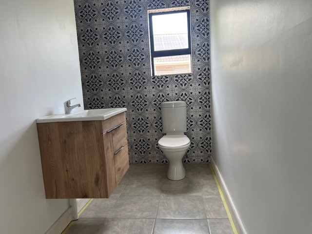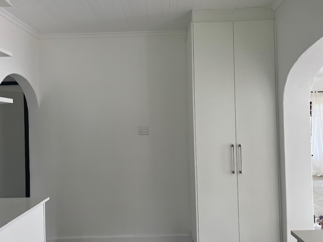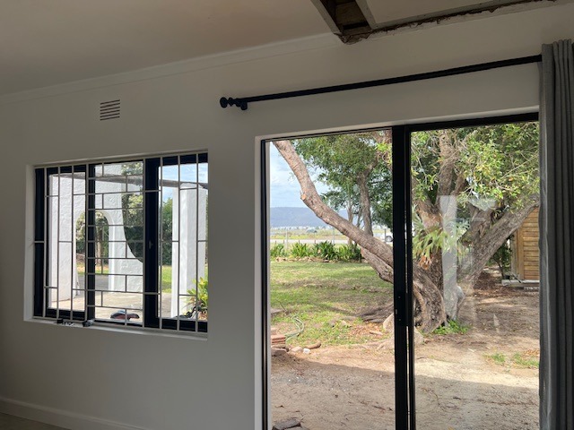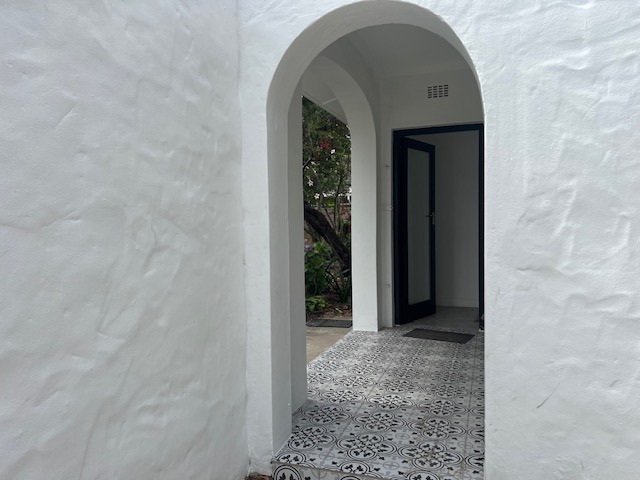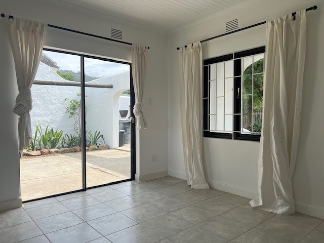Discover this charming 3-bedroom, 2-bathroom rental home nestled in the picturesque area of Old Place, Knysna. This property boasts a distinctive Mediterranean/Spanish architectural style, featuring a freshly painted white exterior, a classic terracotta tiled roof, and modern dark-framed windows and doors. The inviting entryway welcomes you with an arched passage, textured walls, and stylish black and white patterned floor tiles, leading into a well-appointed interior.