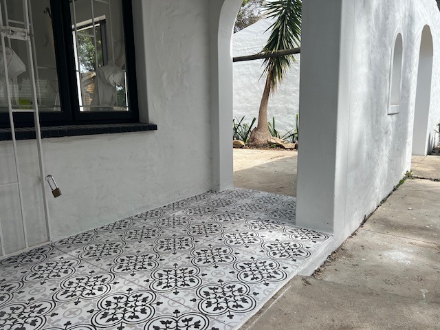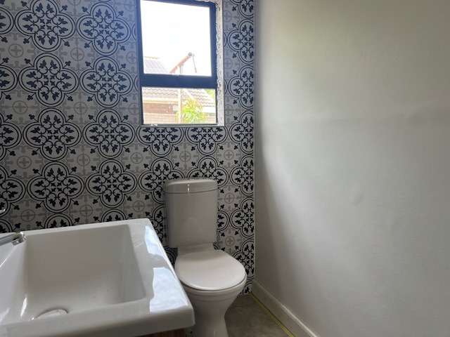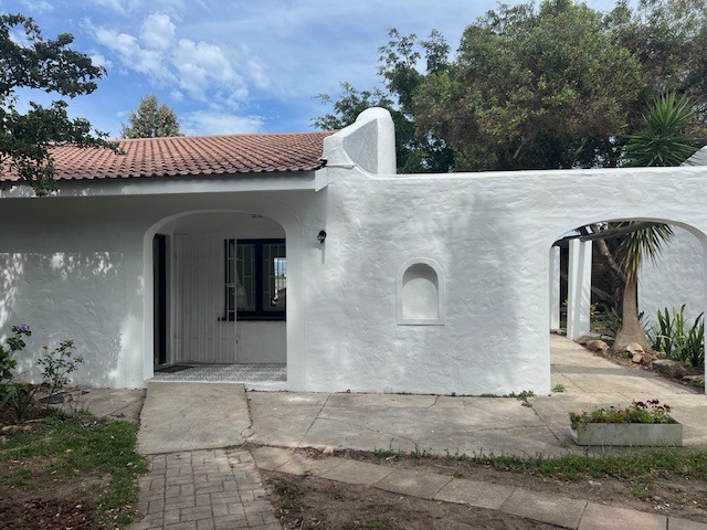 Discover this charming 3-bedroom, 2-bathroom rental home nestled in the picturesque area of Old Place, Knysna. This property boasts a distinctive Mediterranean/Spanish architectural style, featuring a freshly painted white exterior, a classic terracotta tiled roof, and modern dark-framed windows and doors. The inviting entryway welcomes you with an arched passage, textured walls, and stylish black and white patterned floor tiles, leading into a well-appointed interior.