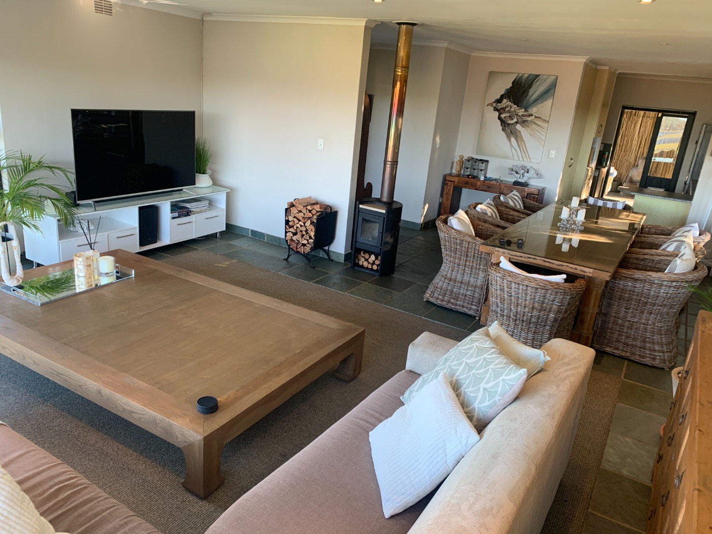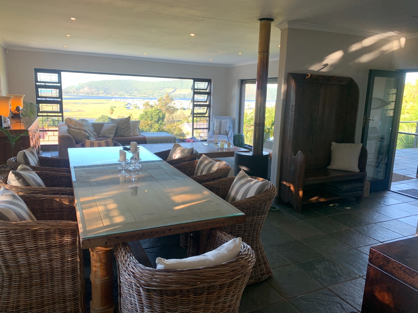Discover this expansive 5-bedroom, 4-bathroom residence available for rent in the sought-after Old Place suburb of Knysna. Designed for comfortable living, this home features three spacious lounges, a dedicated dining room, and a well-appointed kitchen, providing ample space for relaxation and entertaining. The property boasts three en-suite bathrooms, ensuring privacy and convenience for occupants. An open-plan layout, complemented by sliding doors, enhances the flow and natural light throughout the living areas, creating an inviting atmosphere. Additionally, a separate flatlet offers versatile accommodation options. Step outside to enjoy the property's impressive outdoor amenities. A large balcony with a special feature provides an ideal spot to take in the scenic views, while a patio and deck offer further opportunities for outdoor enjoyment. The built-in braai is perfect for social gatherings, set within a well-maintained garden with paving. Practical features include a wendy house for additional storage and two dedicated parking bays. This unfurnished rental is ideal for a large family or professionals seeking a spacious and adaptable living environment. Security and sustainability are well-addressed with an alarm system, access gate, and a fully fenced and totally walled perimeter, ensuring peace of mind. The inclusion of a battery inverter and solar panels provides energy efficiency and backup power, while fibre connectivity supports modern living and remote work. Further conveniences include a dedicated laundry area and ample storage space. Please note that pets are not permitted at this property. Old Place, situated in the picturesque town of Knysna, offers a desirable lifestyle with its tranquil surroundings and proximity to local amenities. This location provides a perfect balance of natural beauty and accessibility, making it a prime choice for those looking to rent in the Garden Route. Key Features: * 5 Bedrooms, 4 Bathrooms (3 En-suite) * 3 Lounges, 1 Dining Room, 1 Kitchen * Balcony, Patio, Deck with Scenic Views * Built-in Braai and Garden * Battery Inverter and Solar Panels * Fibre Connectivity * Alarm System, Access Gate, Fenced & Walled * Flatlet and 2 Parking Bays * Laundry and Storage Facilities * Unfurnished, No Pets Allowed