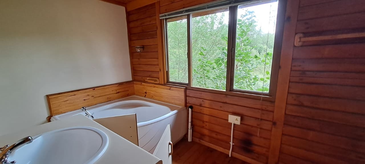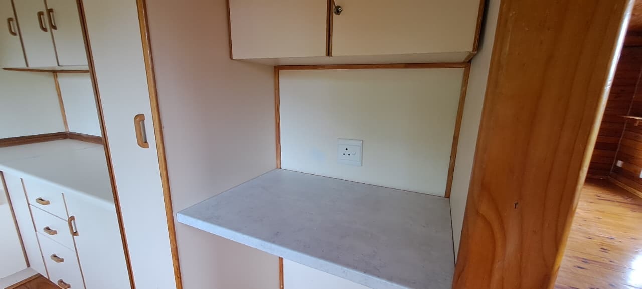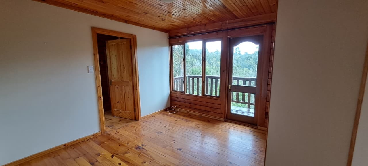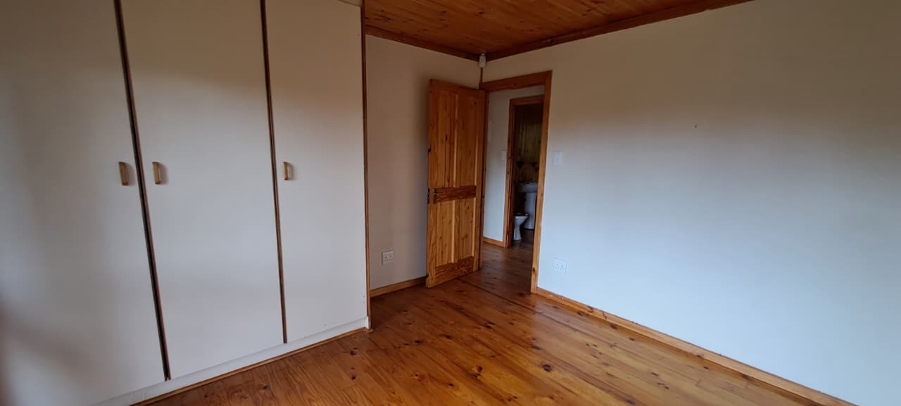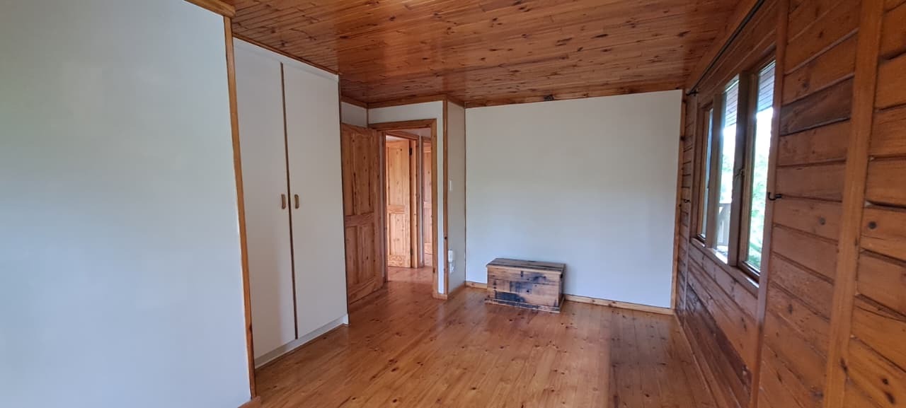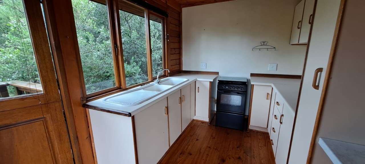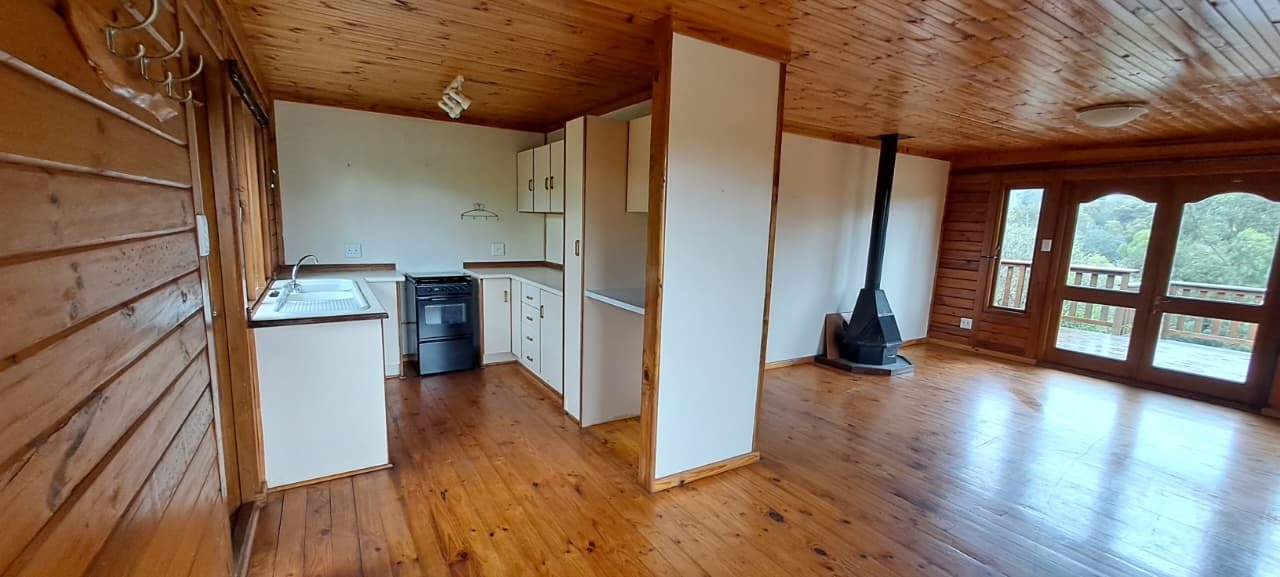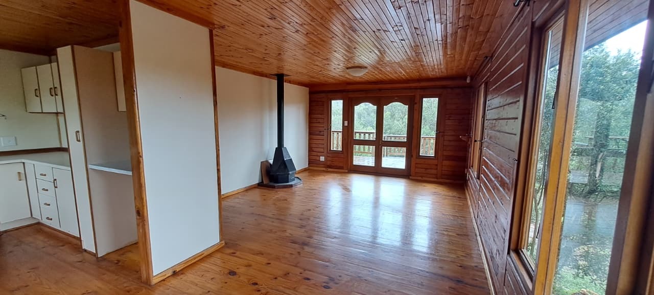 Cozy 2x Bed, 1x Study 2x Bath Log Cabin. Gardens for nature-lovers with garden & forest surrounds. Large wooden deck with lovely pretty Forest Views. Fireplace for those chilly winter nights. Close to bike paths, canoeing, river rides, and walk paths. 14kms from Knynsa Central. 2x Covered Parking under the Cabin. Fibre Line in place; Alarm in place and Armed Respose is for the Tenants Account (ALLSOUND). Includes Garden Service. Water and Electricity are billed separately. The estate does have it's own water plant. Agency Application Fees Apply.