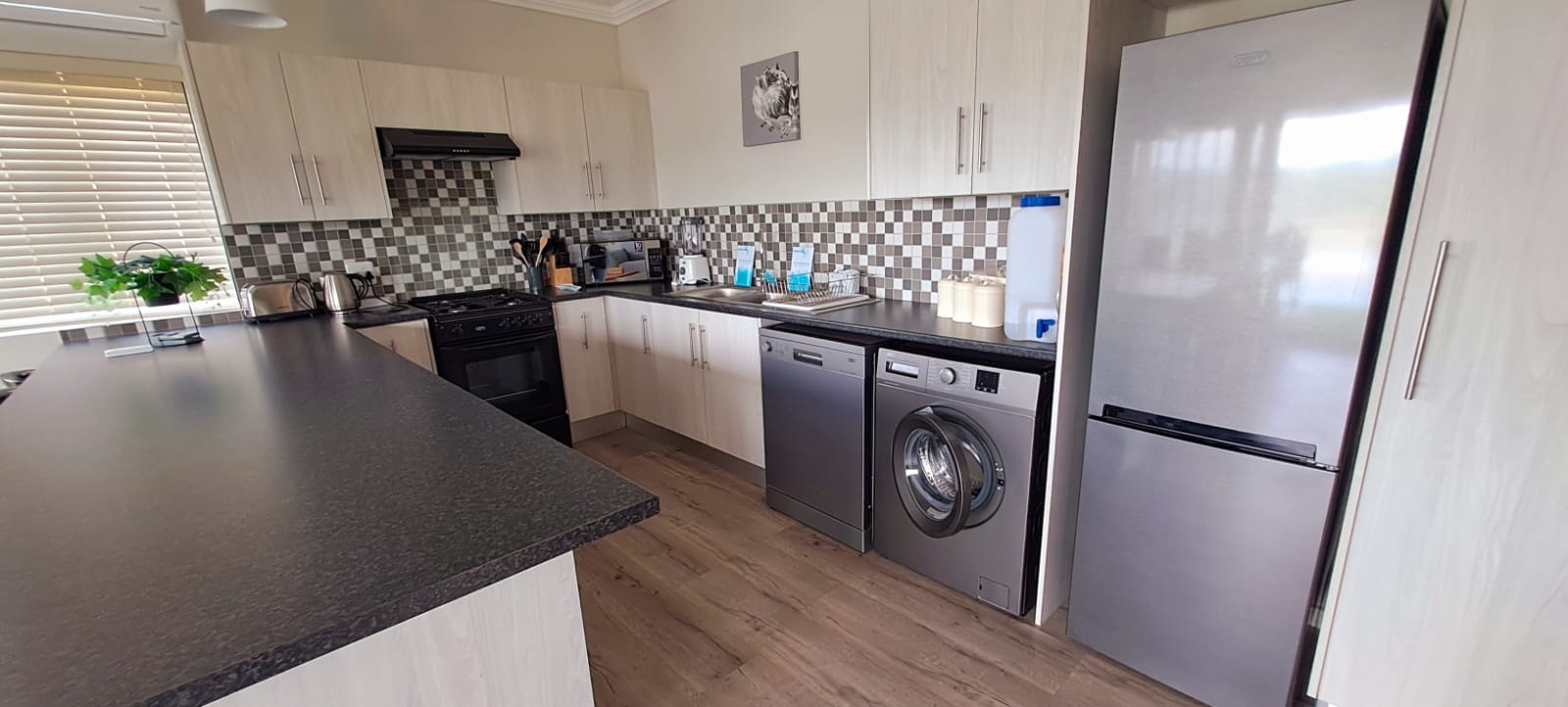 This lovely, fresh looking wooden house on two levels will suite a Professional Person/s who require a Short Term Rental. Rental includes WiFi, Water and General Mainyenance around the Surrounds . The Estate has Communal Pool Facilities which are well maintained. 7kms from Knysna Central and Brenton on Sea. Open Parking for two cars.The Estate does have its own Water Plant. Pre-paid Electricity Meter and Gas Hob. We regret no pets.Amble Inverter. Compulsory Maid 2x per month. Fibre on the Estate but the Tenant must take their own Service Contract.