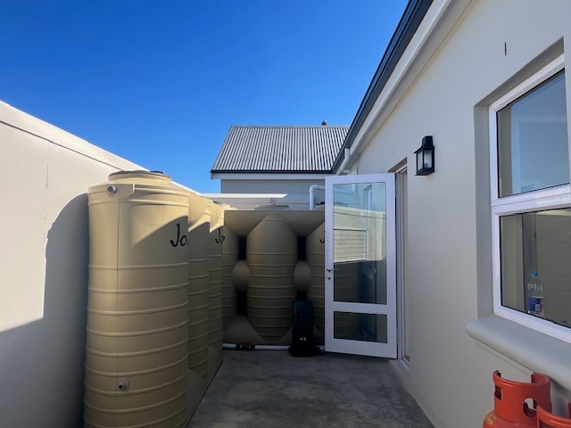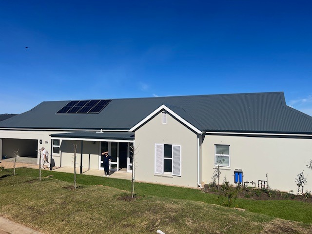Designed for a comfortable lifestyle, this residence is situated within a gated community and retirement village, providing a secure and tranquil environment with access to a club house. Sustainability is integrated with the inclusion of solar panels and an exterior water filtration system, contributing to energy efficiency and water quality. The exterior presents a clean, modern aesthetic with a neat, newly landscaped garden, a paved driveway, and two garages for secure parking and additional storage.